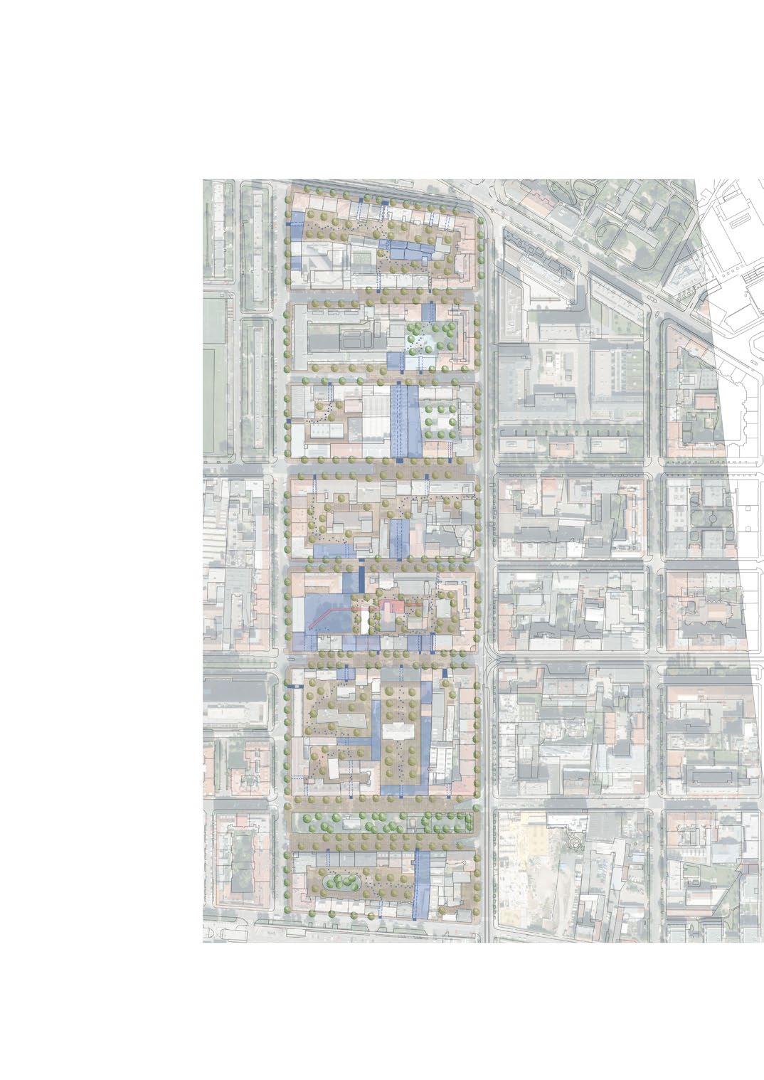 The goal was to show the benefits and easy possibillites to utilize the ground floor for public space accessibilty by creating passages and public spaces in each courtyard. This project served as a case study to say it is possible to address this in large developement projects from the beginning such as the Bubny Project in Prague 7.