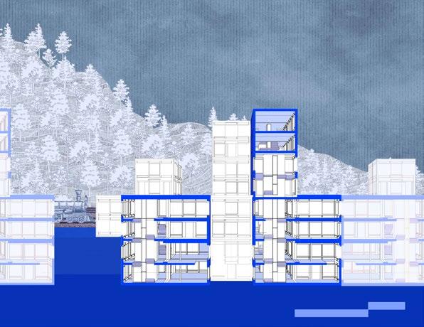 vertical circulation between cubes. Unit 1 and Unit 2 are both based around these vertical-tree off of them. They are a 4-way accessible cube where each side is accessible through any of