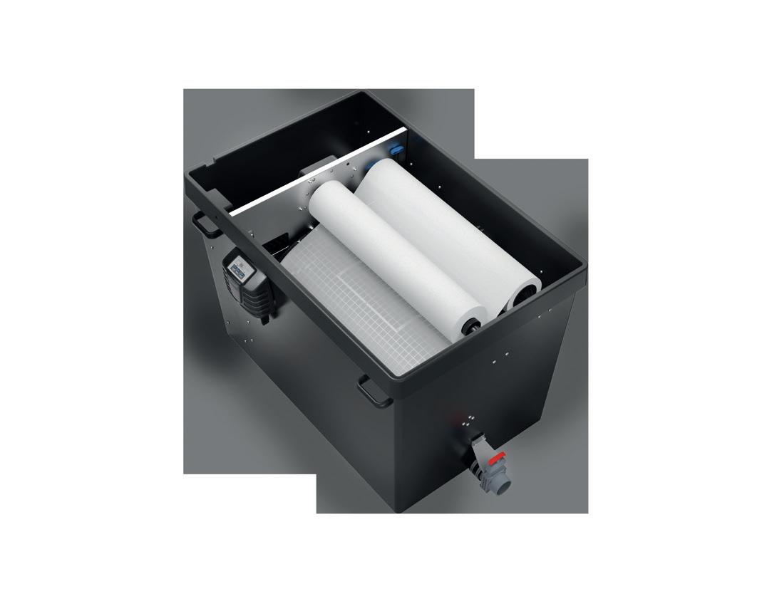 zur Tiefenfiltration sowie üppig bemessene ClearWave Blöcke mit Hel-X Filtermedium hoch wirksam vereint.