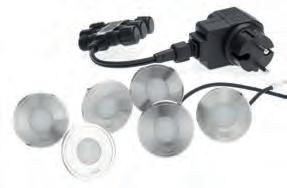 Im Lieferumfang enthalten sind jeweils 5 Pumpen und Leuchtringe à 6 warmweiße LEDs, Kabel und Trafo