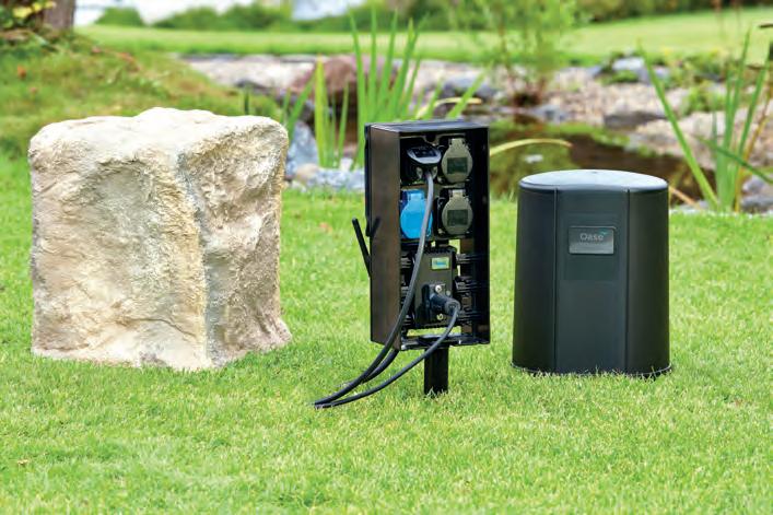 Hinweis: Elektrische Anschlussstellen müssen mindestens 2 m vom Teichrand entfernt, trocken und mit max. 30 mA Fehlerstrom-Schutzeinrichtung gesichert sein.