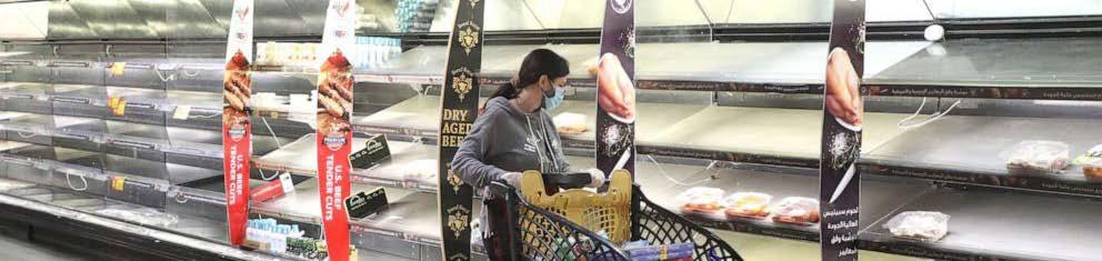 A customer pushes her trolley next to near empty shelves, Beirut, Lebanon, Jan. 11, 2021