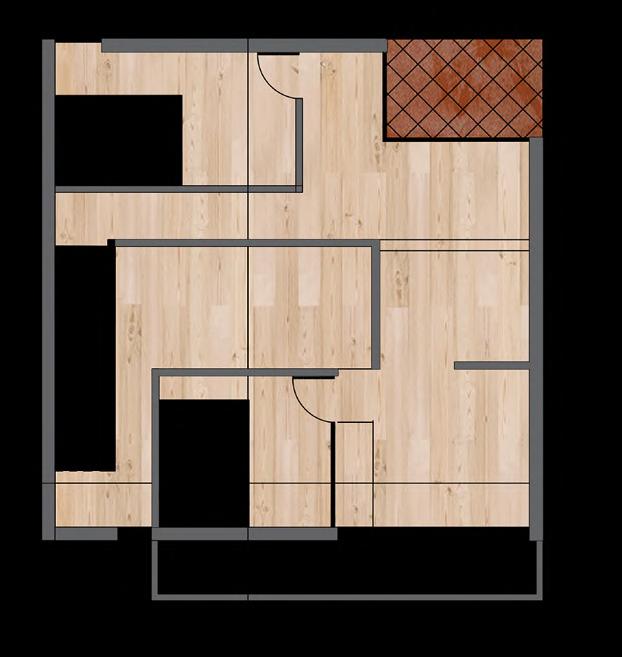 Presenting the ground floor plan of four apartment units to show the intentions for the arrangement. Positioned in opposing directions, the apartments are strategically laid out to bring external spaces side by side, fostering a sense of neighborly interaction akin to the front lawns of houses, despite the unique setting of an apartment.