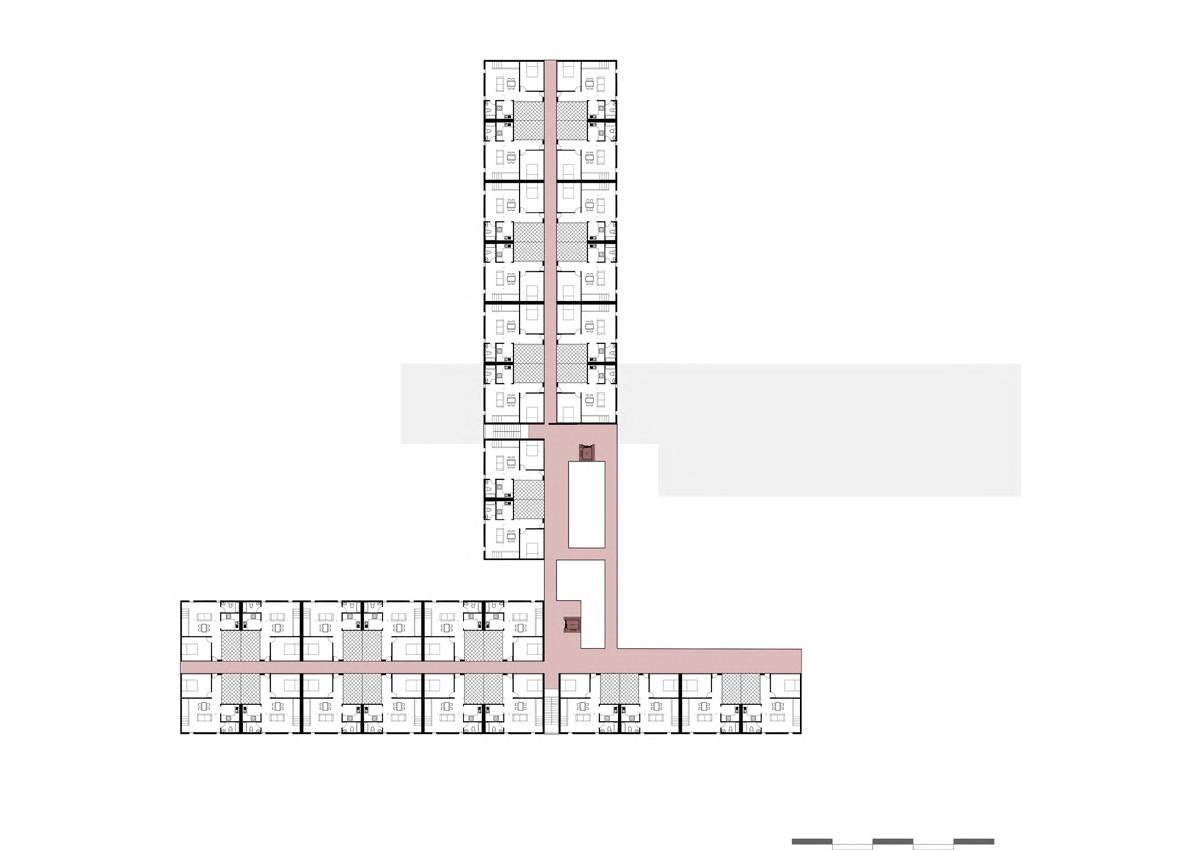 The two pink circles represent the main social spaces that I have incorporated into my design. The idea is to design a social area with public access and the other with residents-access only space.
