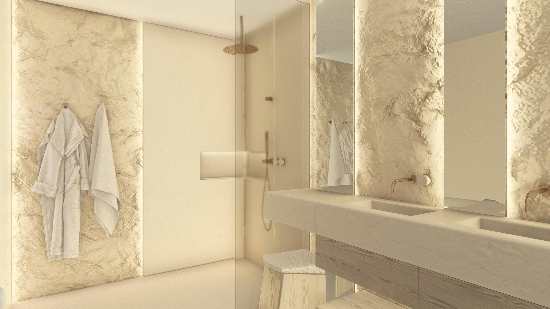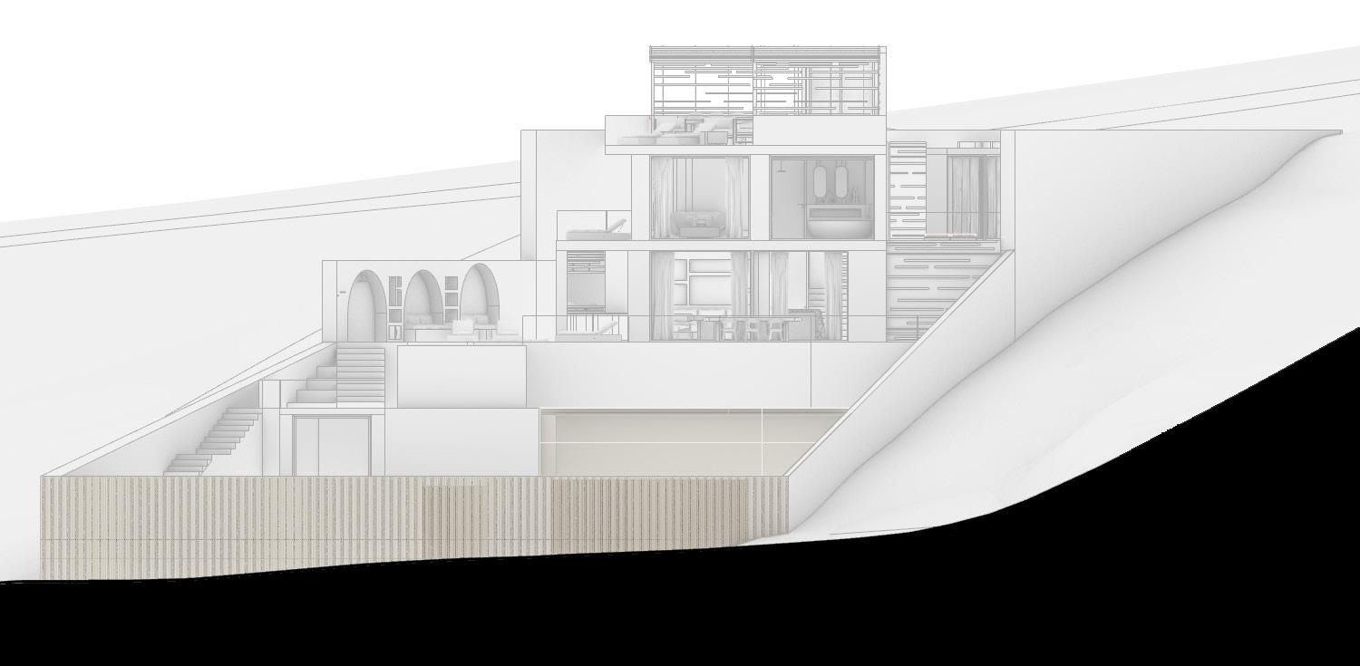 GYM BATHROOM 1 2,6 0,4 3,3 17,3 7,9 0,4 1,7 3,2 1,2 1,4 1,4 5,4 3,1 1 1 2,9 0,4 3 0,4 6,8 0,6 1,2 2,5 3,5 0,5 1 5 12 1,4 6,8 2 0,8 3,1 2,5 2,1 2,5 0,4 3 0,4 0,2 1,4 1,1 1,1 1 1 0,4 0,4 1 0,2 0,2 0,4 0,2 2,4 1,1 4 1,7 0,4 1 0,7 0,5 2,2 1,8 0,2 0,5 1,2 1 1,3 2,1 2,6 15,5 1,3 2,6 1 0,9 0,9 3,7 0,7 2,6 3,3 2 4 0,4 5 6,2 2,5 0,9 0,6 1,5 0,5 1,2 1 2,3 1,2 1,2 4 3 1 1,8 2 1,1 1,5 5,7 1 1 1 1 1,3 0,5 14,7 2,9 0,4 0,4 1,2 2,6 1,2 1,1 7,6 0,8 9,4 1,2 12,1 2,7 0,8 0,6 0,6 0,6 0,6 0,6 0,6 1,2 1,2 1 0,2 0,6 0,3 0,2 0,3 0,2 0,2 0,4 1,1 +91 cm Kitchen island Bar OUTDOOR KITCHEN BARBBQ, PLANCHASINKFRIDGE -ICE LIVING AREA 91 M2 TERRACE 150 M2 BEDROOM 1 18 M2 BATHROOM 1 6,5 M2 POWDER ROOM 3,2 M2 ELEVATOR JACUZZI -135 WATERLEVEL -20 WATERLEVEL FIREPLACE Rock Long hanging Shelves Short hanging 2x ENTRANCE STORAGE UNDER STAIRS Hidden tv and desk storage for towels, books, etc. LOUNGE FIREPIT SOFA IN MORTEX Salt water in pool and jacuzzi! Column integraded in cabinet Column integraded in cabinet NICHES IN WALL FLOATING MESH DAYBED Niches behind Niches behind wardrobe ELEVATOR HIDDEN PROJECTOR SCREEN GYM ROOF OLIVE TREE Pool NICHES IN WALL FLOATING PLATFORM storage +101 cm Rocks, plants H T = 44.38 LEVEL H = +6.58 HT = 42.38 LEVEL H = +4.58 FLOOR OUTSIDE H = 39.38 LEVEL H = +1.58 HT = 42.38 LEVEL H = +4.58 15 16 17 18 19 28 29 30 31 32 33 34 35 20 21 22 23 24 25 26 36 37 38 glass H T = 44.38 LEVEL H = +6.58 Rocks, plants niche: keys, umbrella etc. 2 single beds Nisches Shower in middle, otherwise not enough hight! 28 30 32 34 10 14 11 12 13 27 steps for pots Shower niche Fridge Sink Stove topoven Bin D.W pans pots plates glasses pantry coffeebar micro cabinet Office Suplies Secured door Alila see through 2 1,3 Stairs in mortex 0,1 1,2 1,1 0,8 VIII. GUEST BATHROOMS RENDERS