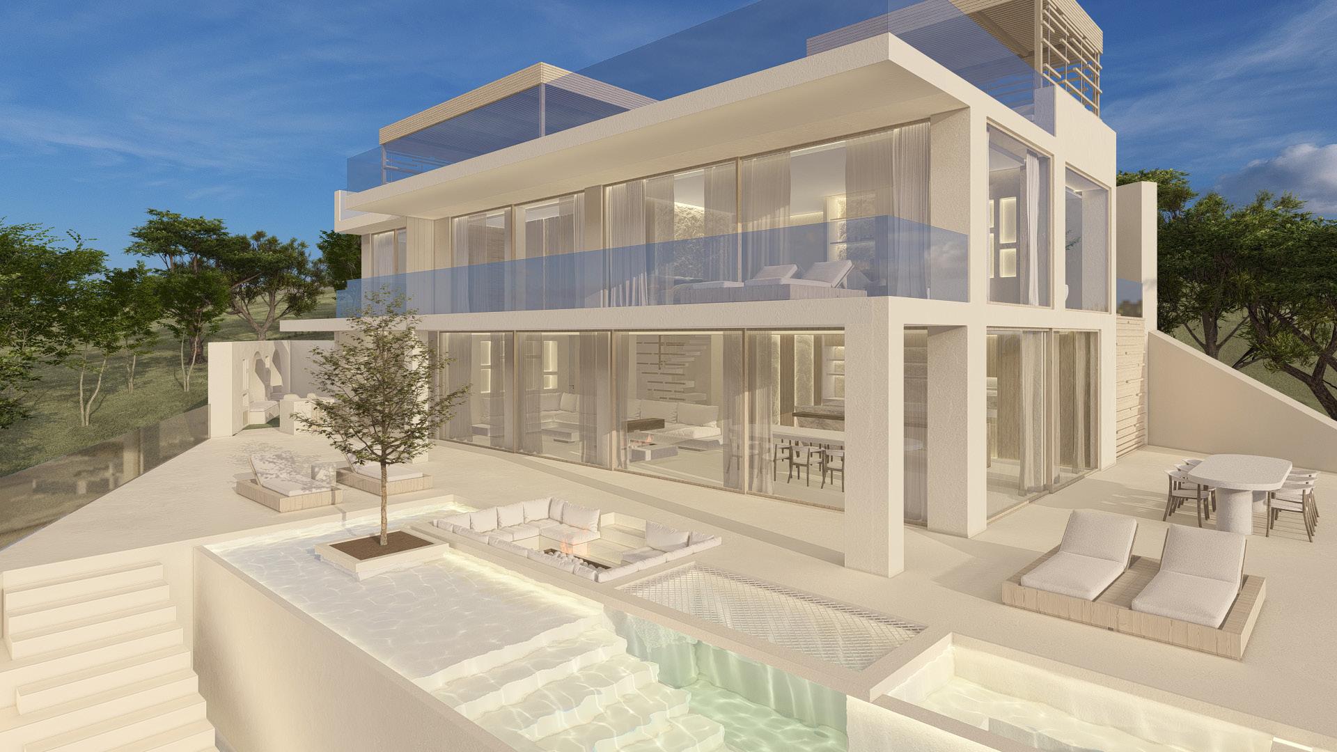 Total refurbishment of two floors, a rooftop terrace with a jacuzzi and outdoor kitchen, a pool and terrace, a gym, a garage, and a spa.