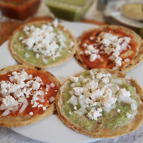 The picadas are delicious, they are made from a handmade tortilla with corn dough, edges are made around and inside them, on top they have sauce that can be of different types, either red or green, onion and fresh cheese.
