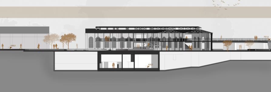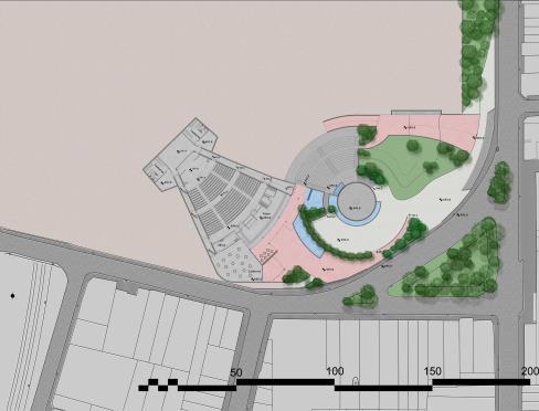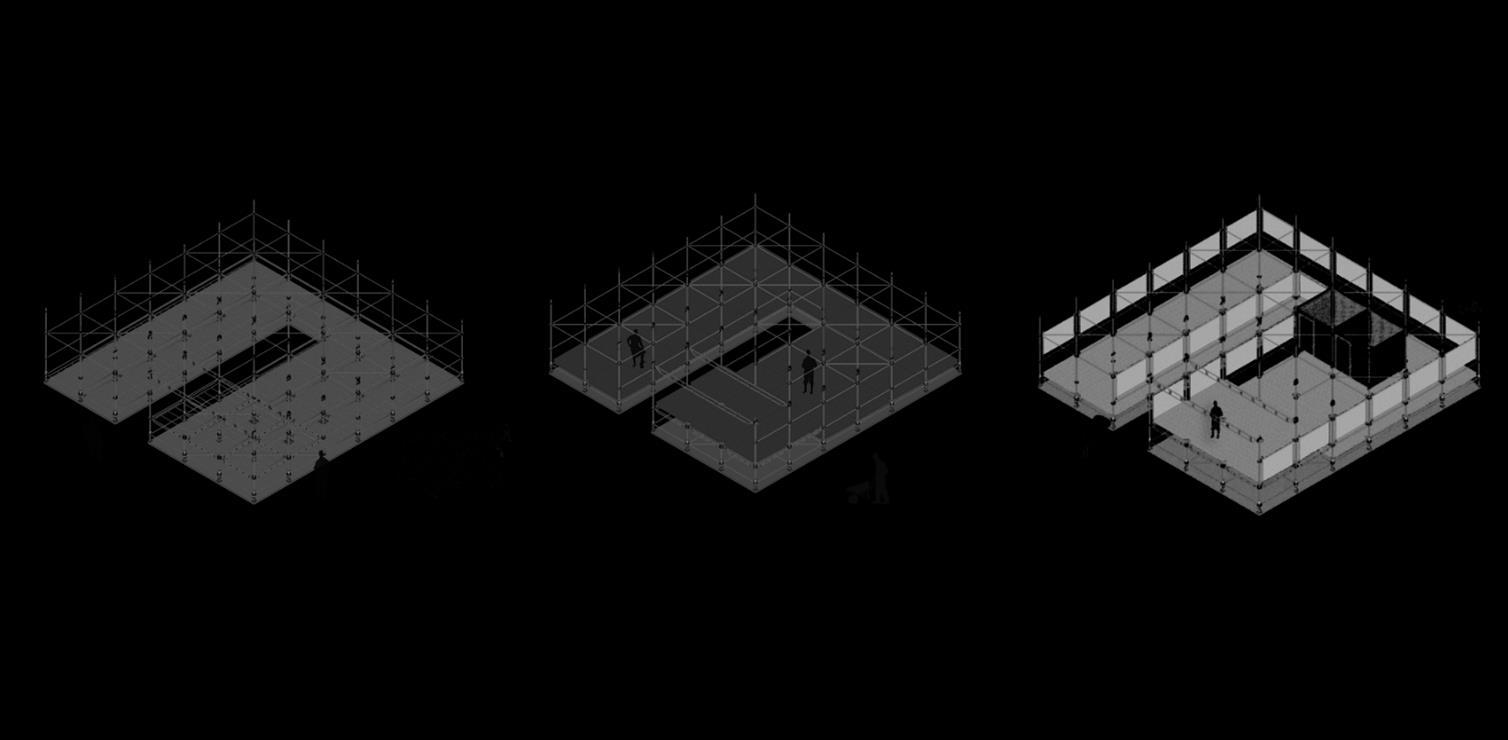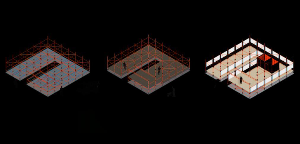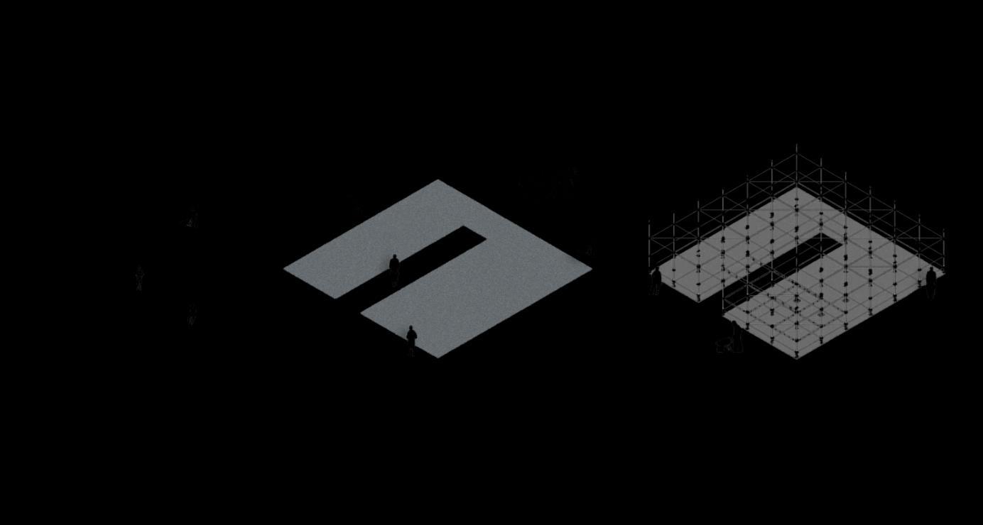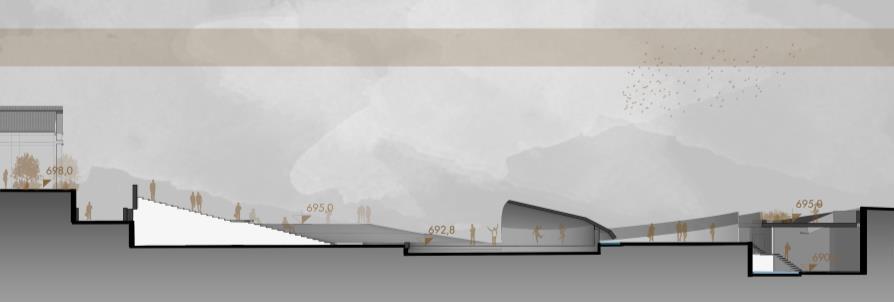 Assim, o partido do Museu consta com o fluxo de pessoas ser desenhado pelos próprios quadros expostos por estrutura de tubos metálicos, começando na área de ingresso e chegando até à área de ensino, lugar reservado para ser apoio do palco, proposto para haver discussões acerca das artes expostas, palco tal é de caráter multiuso, visto ser para dentro do museu e para o lado externo também. Sendo todos esses espaços elevados 0,50m do solo tendo piso de gradil metálico, havendo também uma faixa de vazio e 2 banheiros PCD vedados por dry wall
