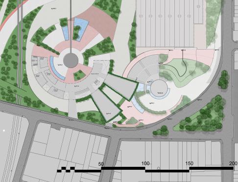 Como sendo o principal requisito do projeto, foi criado um partido no qual todas as estruturas e tudo o que foi criado partisse de um centro