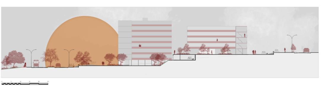 Escolas de Música e Dança, junto ao espaço de exposições de Arte, de onde irradiam as marquises