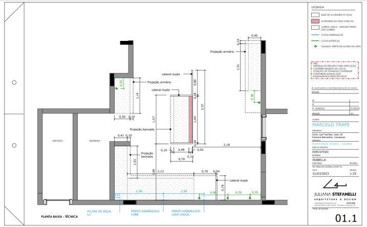 Além disso, minhas funções constam também reuniões mensais com clientes e fornecedores, vistorias, realização de projetos de aprovação em prefeitura e condomínio e até mesmo participação de feiras, eventos e palestras para acompanhar a atualização da profissão.