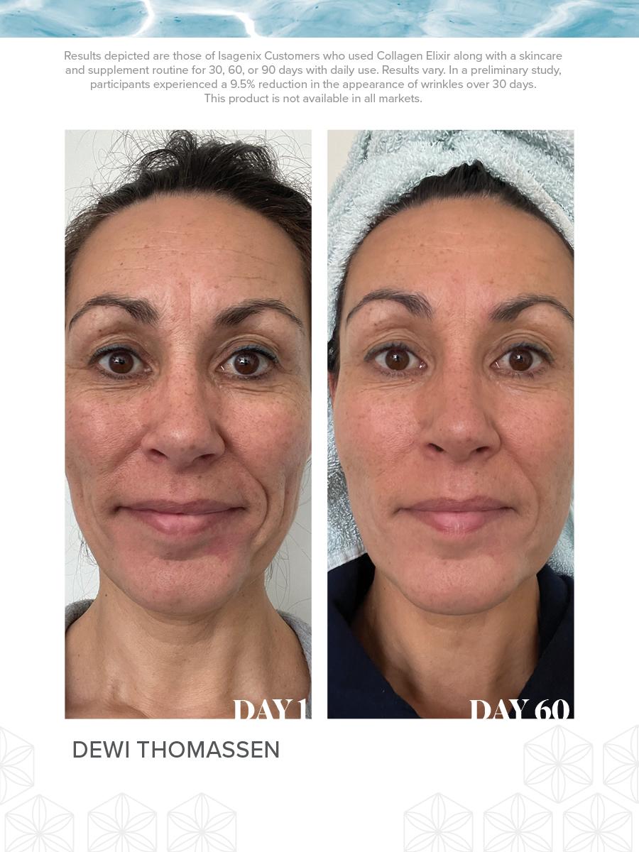 The skin you’re in was created to thrive, protect, and yes, even glow. It’s up to you to enhance it as time passes. Enjoy improved skin elasticity to help reduce the appearance of fine lines and wrinkles. Enhanced collagen production for your skin equates to a fresh, dewy appearance while you protect it against damaging effects of photoaging. Isagenix Collagen Elixir does the work. All you have to do is show up and embrace your glow.