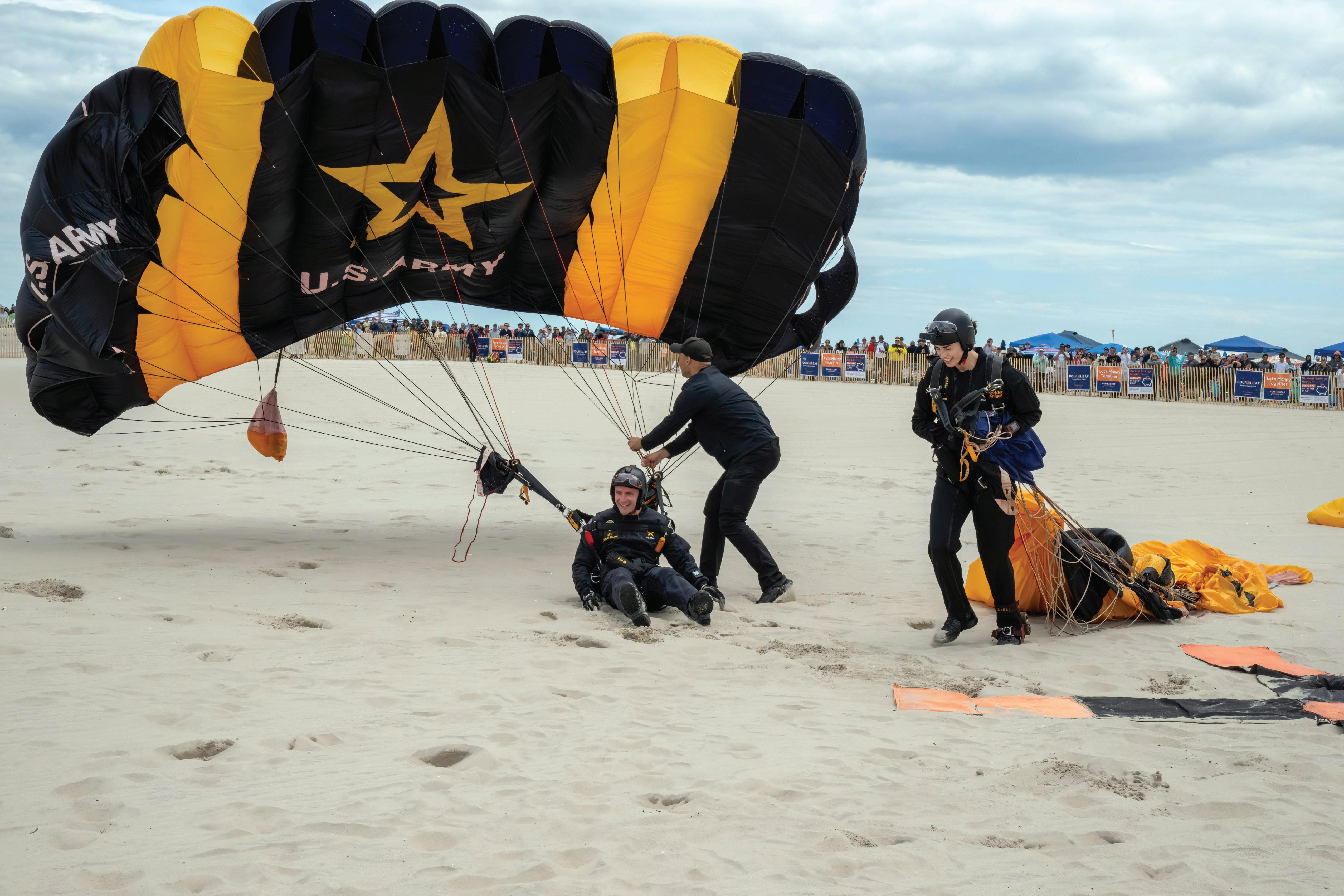The summer season on Long Island kicks off every year with an air show for the past 21 years at Jones Beach. Out of the past 21 years the Army Golden Knights Parachute team has come to open the show with the flag drop and then dazzle the record crowds each year with an aerial performance of skill and accuracy with either the Gold team or the Black team.