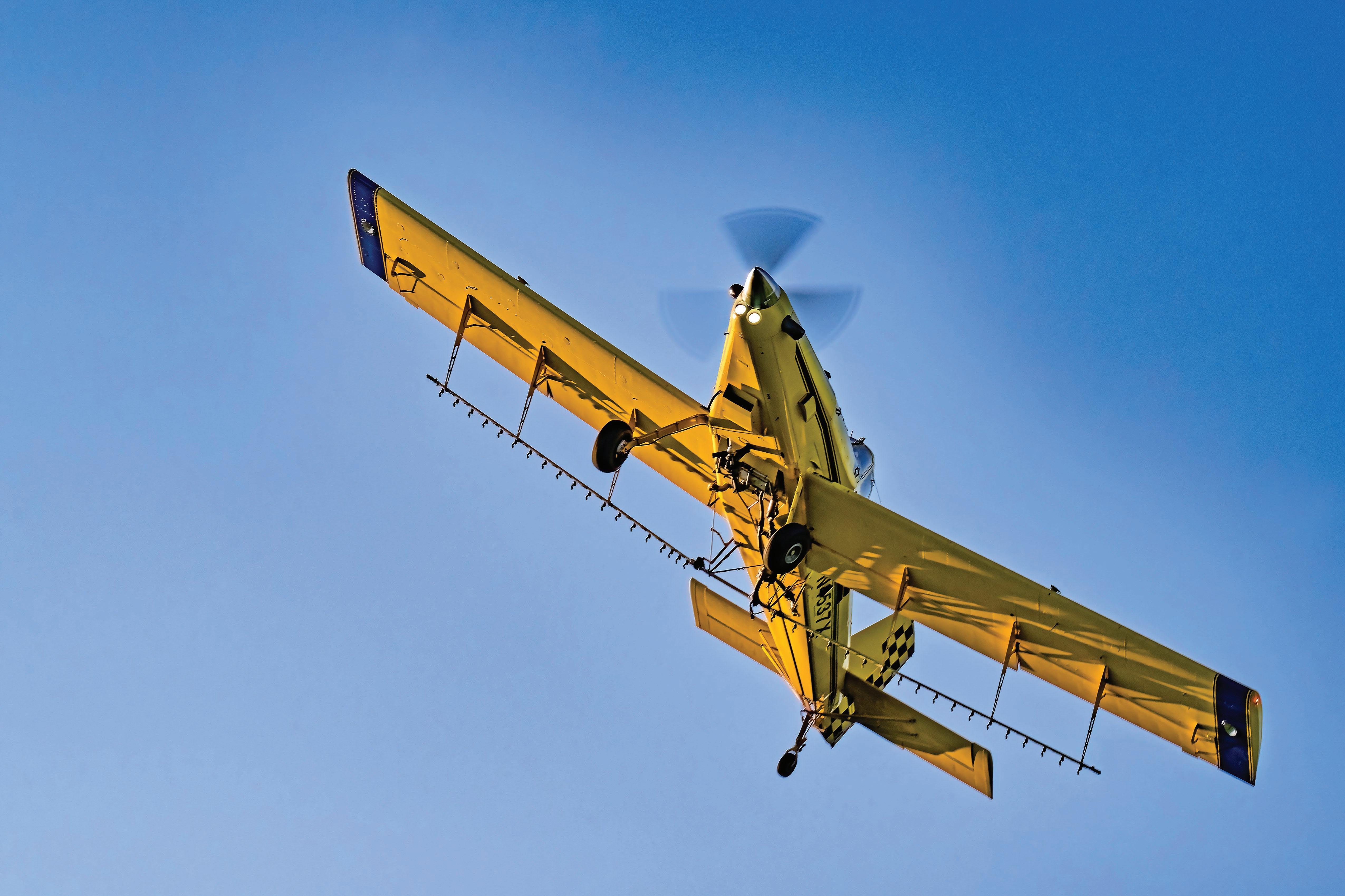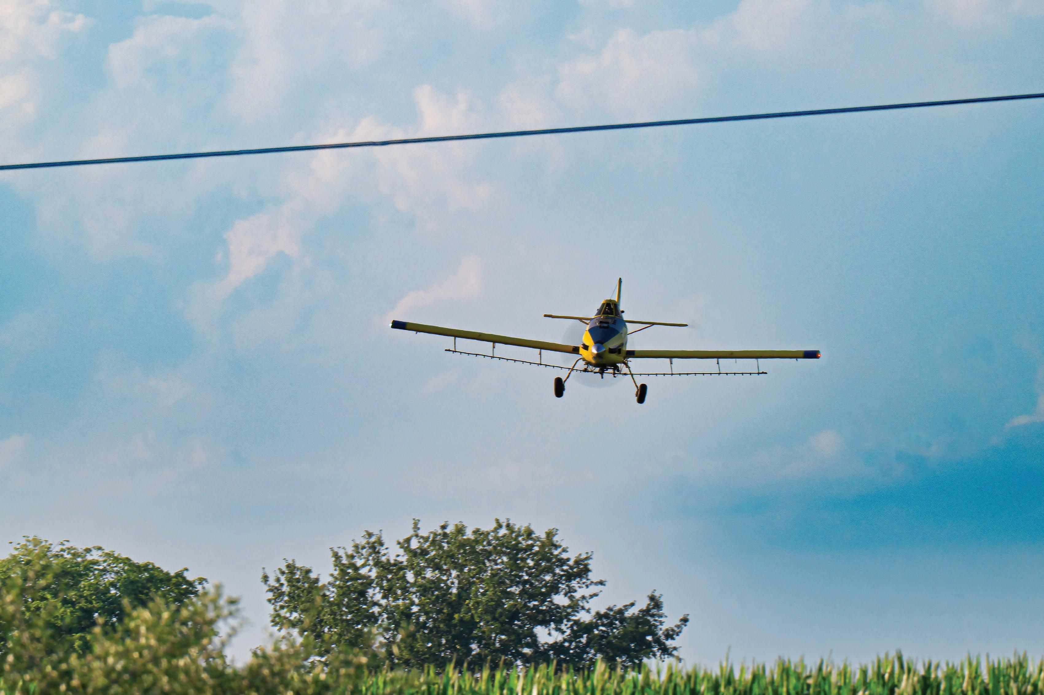 To combat these beetles, farmers will apply various insecticides. Because the corn is often seven feet high or taller, it’s not possible to apply insecticides via tractor and sprayer. This is where aerial application comes into play. Aerial applicators are amazing pilots, and spraying fields can be a challenging process. The fields often have power lines along their edge, may have windmills, or have residential homes nearby that the aerial applicator must consider when they are spraying the field.