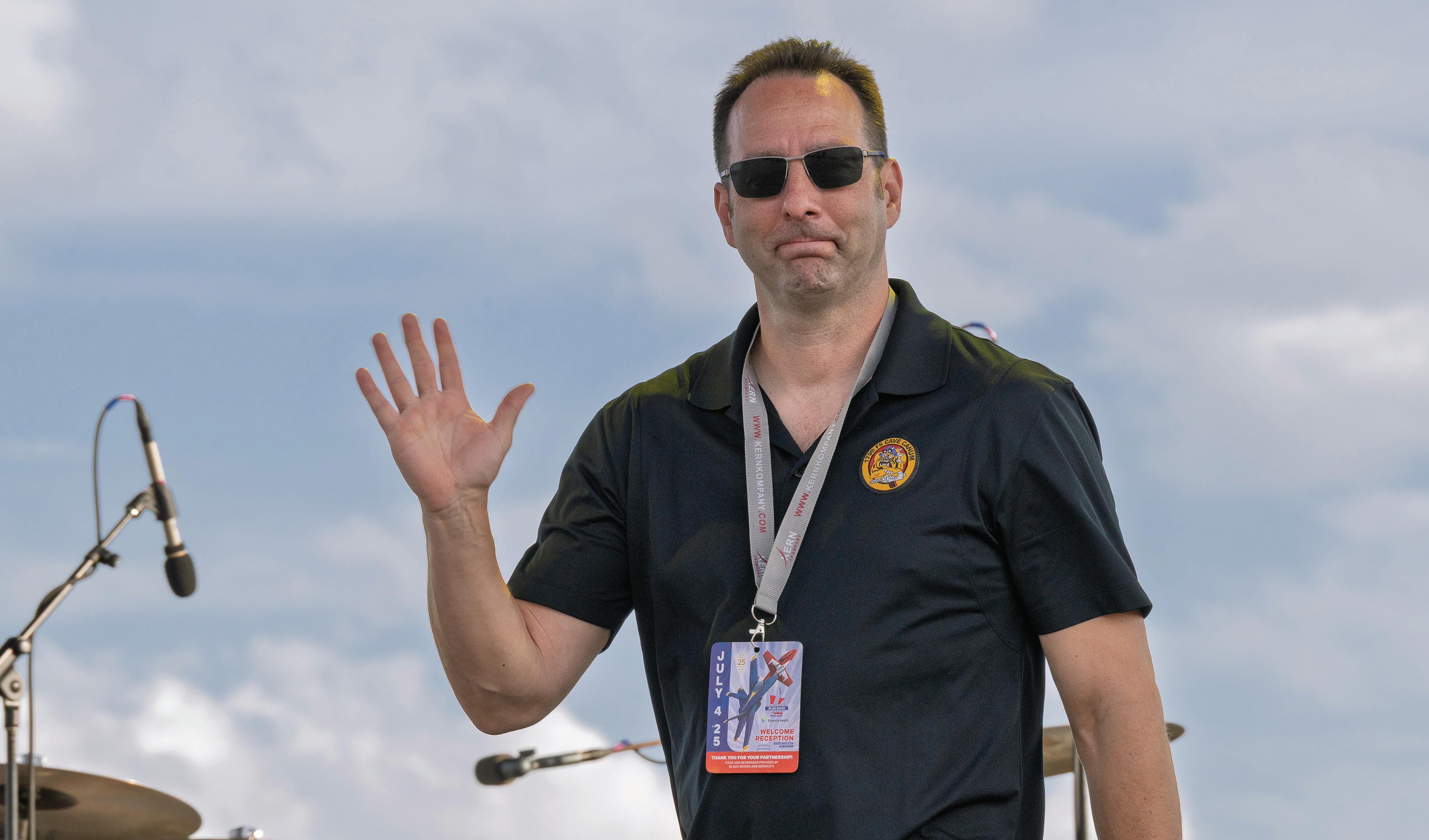 Nathan Hammond, The GhostWriter and the Next Gen Eagles over Lake Winnebago during EAA AirVenture 2025.