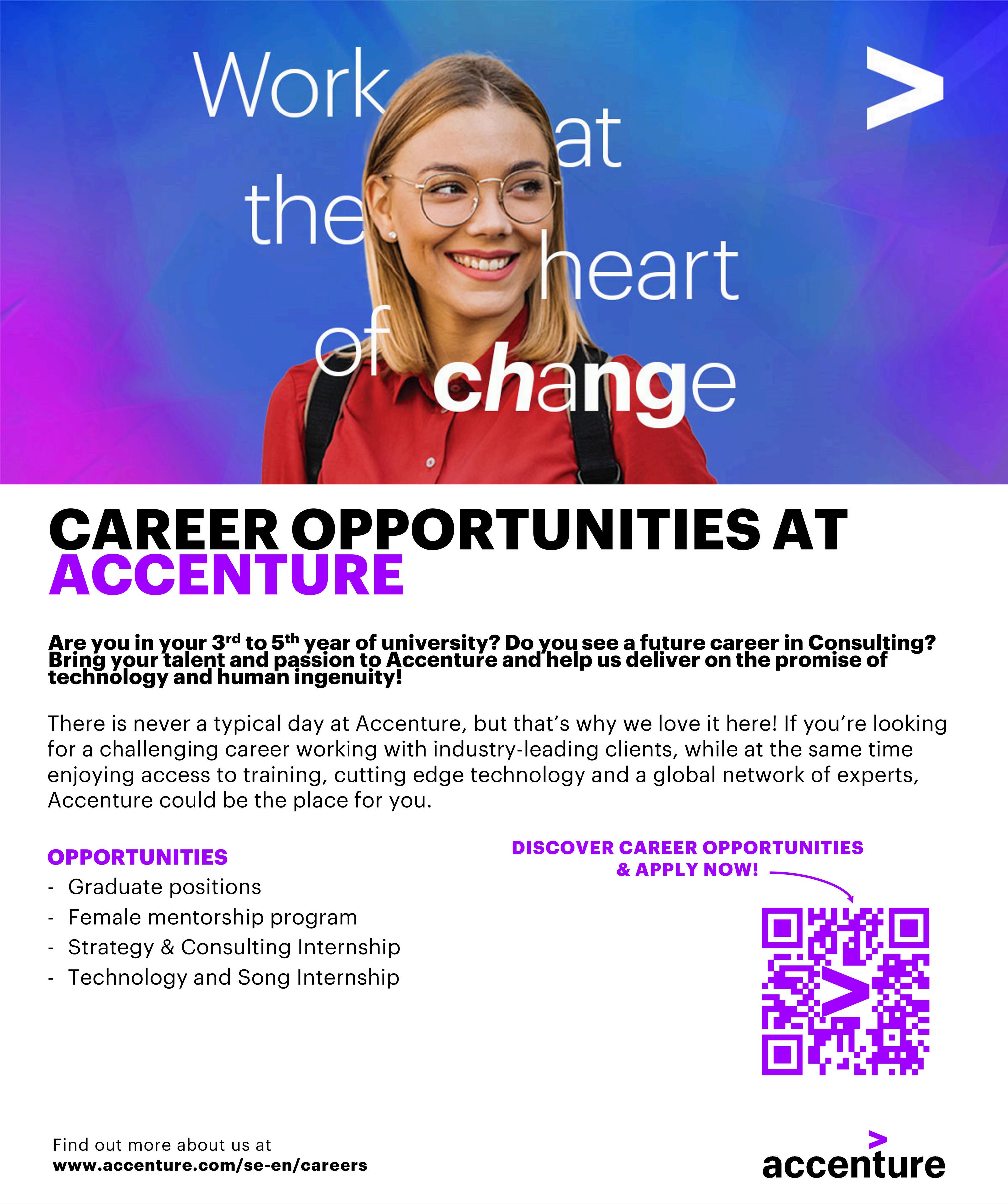 Komochpratamedossförattförstå merommöjligheterinomden globalakonsultbranschen.Vivill pratamedstudenterfrånalla terminer,menerbjuderpraktiska möjligheterfördigsomläsersista ellernästsistaåret..