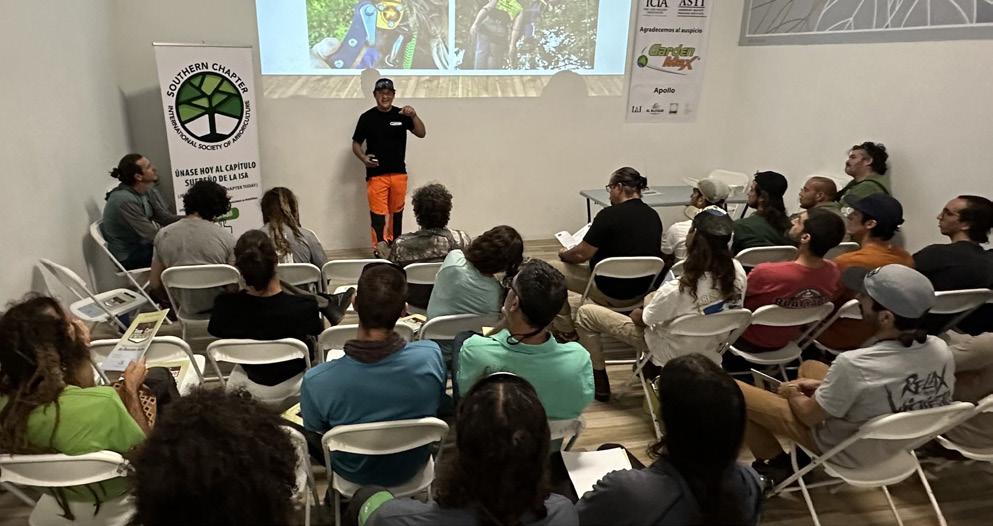 by Skip Kincaid, Southern Chapter Executive DirectorIt may surprise some members to learn that one of the smallest areas of our chapter likely has the biggest increase in arboriculture activity. Puerto Rico’s utility system is being rebuilt and updated after being ravaged by mother nature during the last few years. Veteran arborists and new arborists there are looking for training opportunities to keep pace with new skills and methods that make them productive and safe. Chapter board member Christian Torres Santana made arrangements for a three-day workshop in Spanish that covered first-aid, aerial rescue, and electrical hazards awareness (EHAP). There were 38 arborists in attendance and the Chapter gained 20 new members! The class was supported by grants from the Arborist Safety Training Institute (ASTI) and the Tree Care Industry Association (TCIA). A local vendor, Garden Max, provided meals to keep the attendees energized. This is yet another example of cooperative ventures to bring good information to professional arborists!