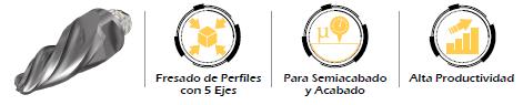 El aumento del número de labios permite una productividad considerablemente mayor en operaciones de fresado de acabado y semiacabado de superficies geométricamente complejas.