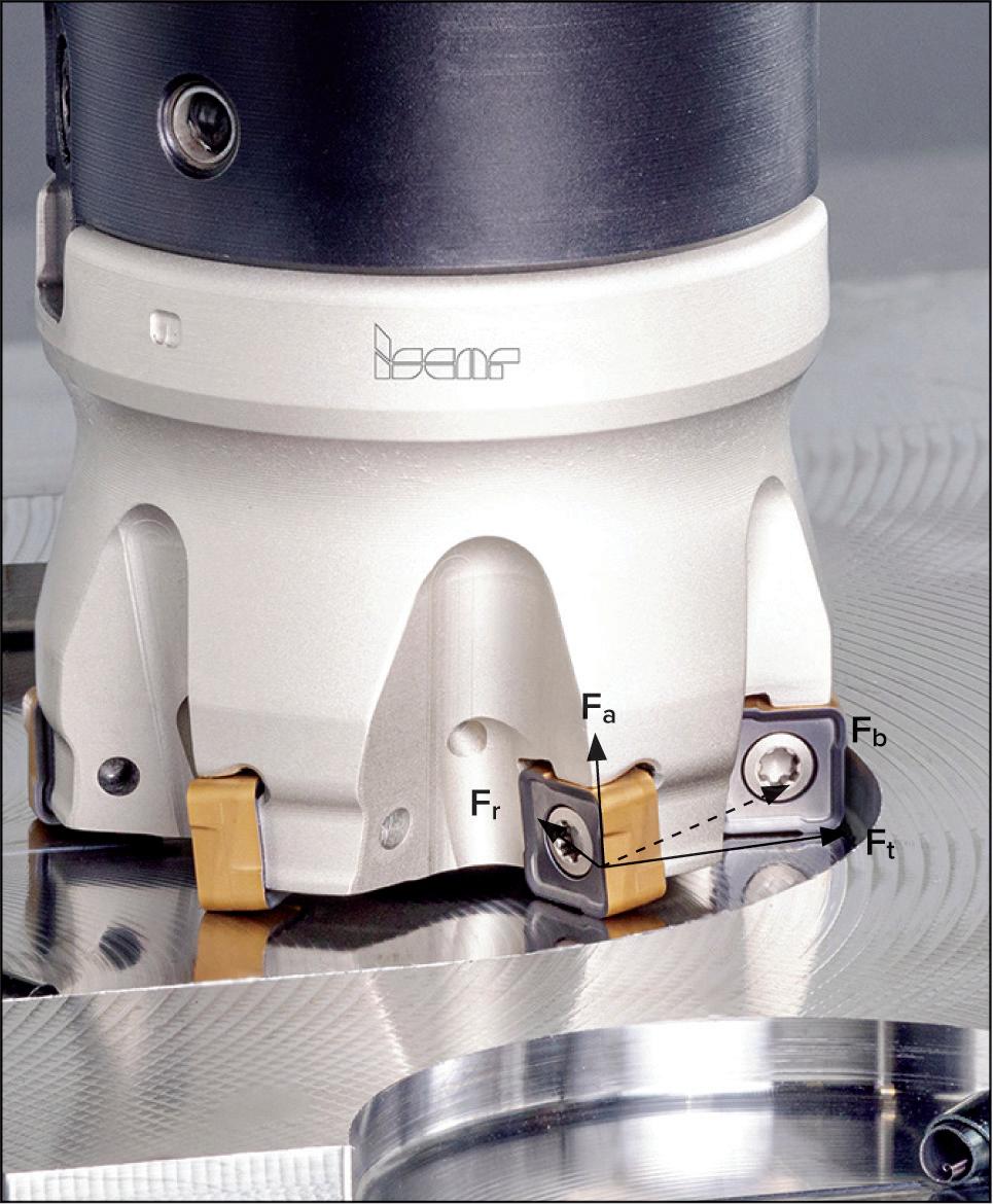 Como ocurre en torneado, en fresado (Fig. 2), la fuerza radial Fr empuja la fresa lejos de la herramienta. La resultante de Fr y Ft se denomina “fuerza de flexión” Fb, y dobla la herramienta.