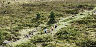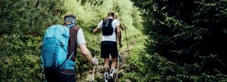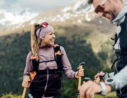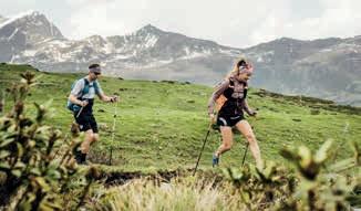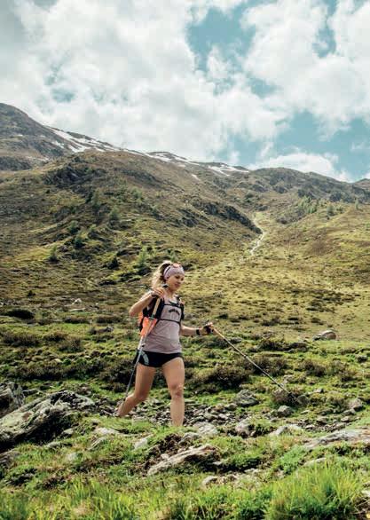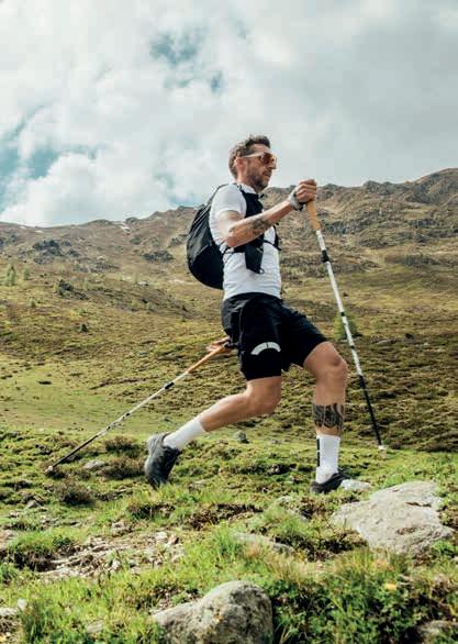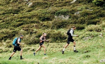 usually a mixture of fast-paced hiking and running. The tours take place in technically demanding and often stony terrain. Hiking trails with a few metres of altitude to climb are ideally suited for this. Since the focus of Cross Trails is on going uphill, tours near cable cars are ideally suited for this sport. This means that the descent can be made comfortably by cable car, which is easy on the joints.