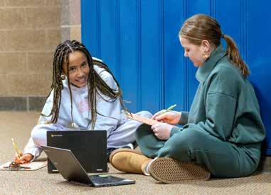 The media center is the heart of the middle school, serving as an inviting student gathering space. The flexible furniture creates options for collaboration and comfort. The Edge is a perfect place to work on homework or connect with peers.