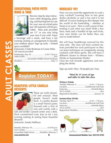 Monday, February 10..............................6:30-8 p.m. 5527-A20W........................................................$18 Annandale High School...........Deadline: February 5 www.annmlce.com 8