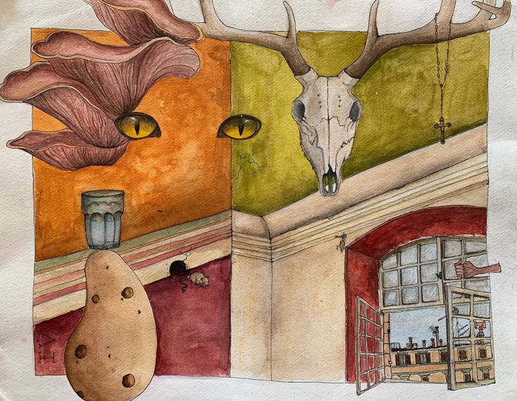 As technology develops every day it slowly starts to get implemented in the rest of society - especially in things one might not think of such as art Whether it is a good thing or a bad thing, it can be utilised to help artists or get rid of the necessity of artists roles My work is meant to showcase the distinction between traditional and AI art and how it is slowly but surely, mixing together