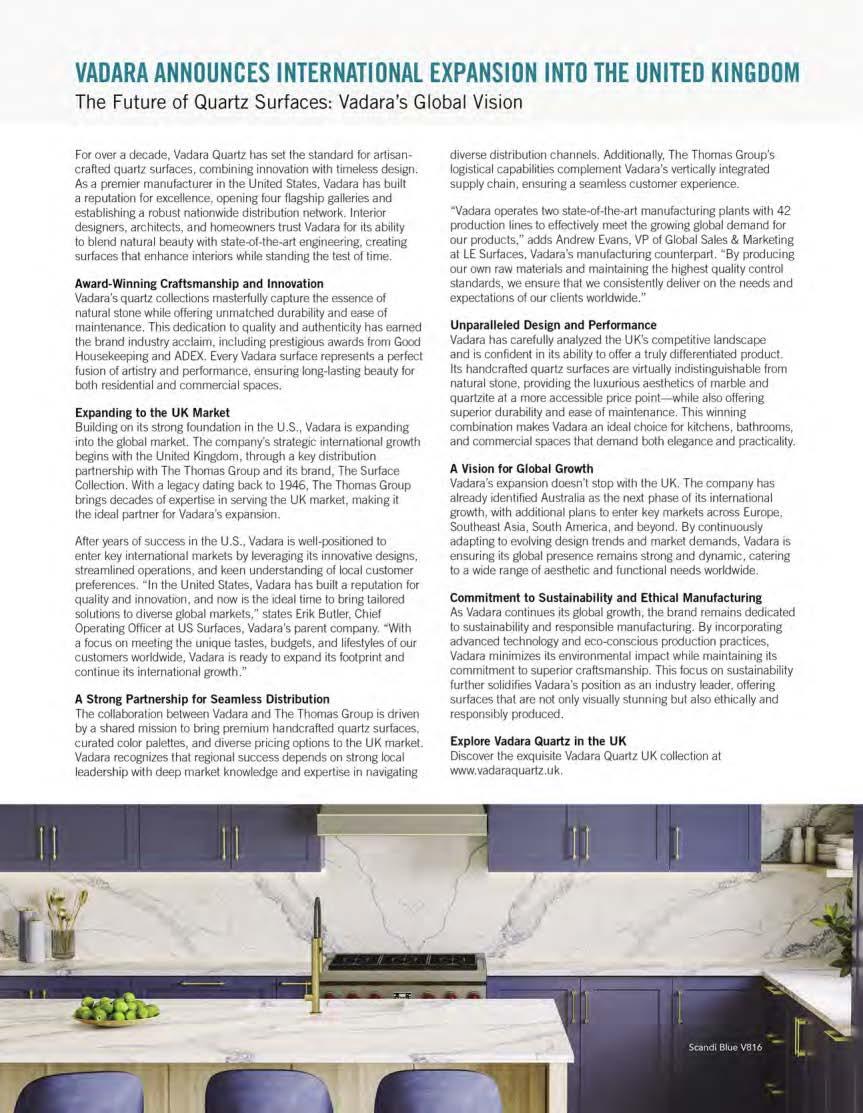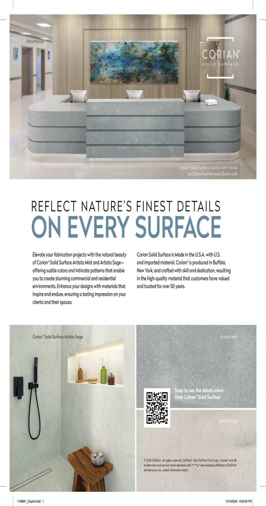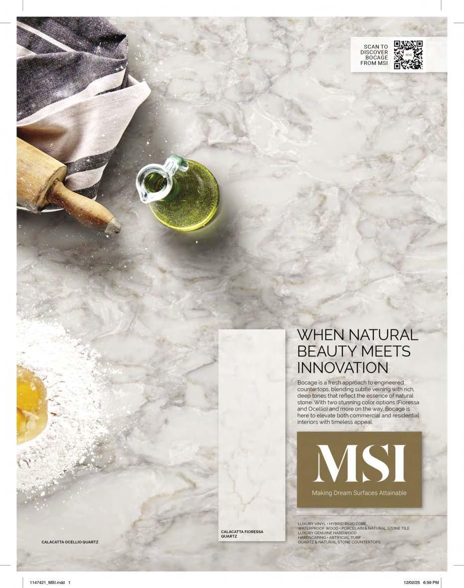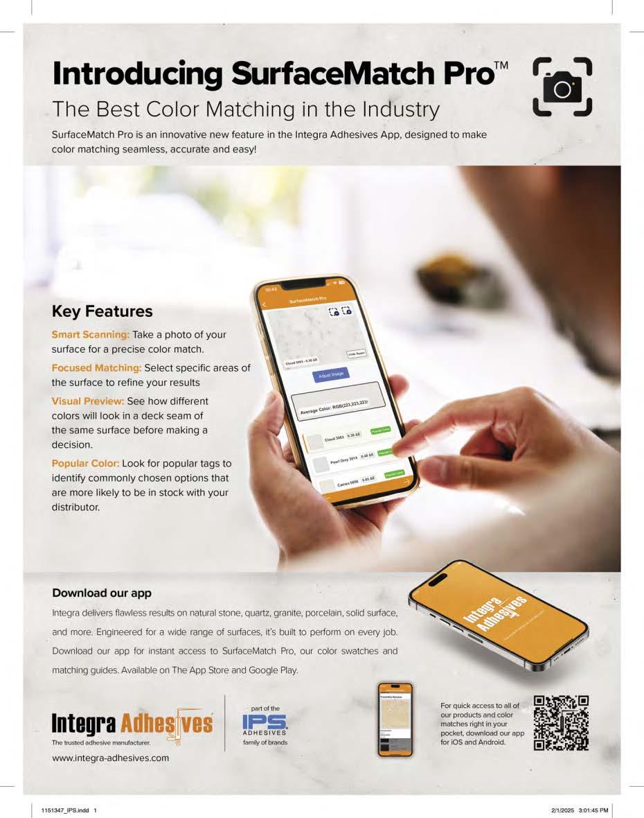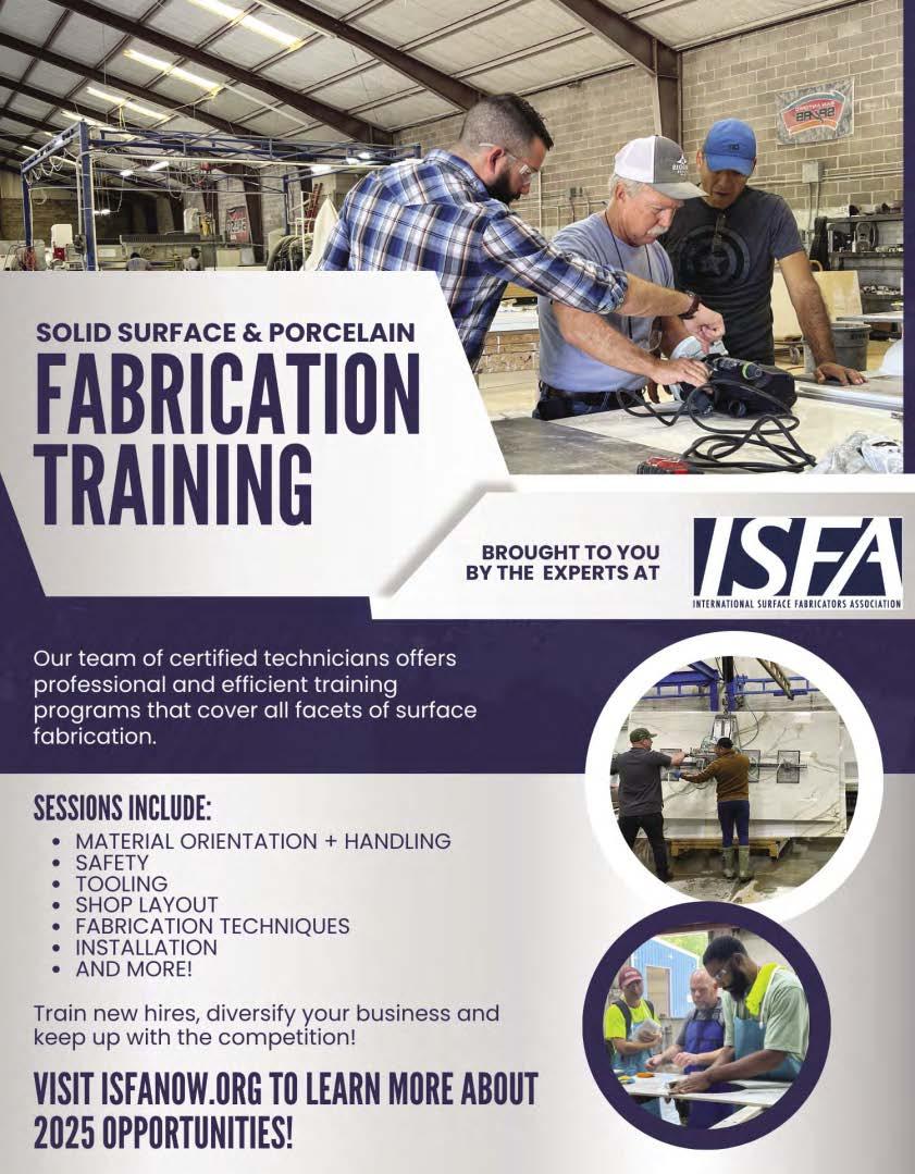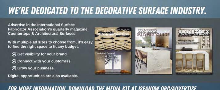 Countertops & Architectural Surfaces magazine is proudly printed in the United States of America. Copyright © International Surface Fabricators Association 2025. All rights reserved. No part of this publication may be reprinted or otherwise reproduced without the publisher’s written consent.