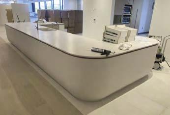 Thoughtfully designed to enhance both operational efficiency and customer experience, the facility features a robust inventory that includes over 365 Wilsonart Laminate Wallboard designs, 75 Wilsonart Solid Surface designs and 70 Wilsonart Quartz designs. The warehouse features a five-ton quartz crane, an adhesive safety storage unit, and a High Pressure Laminate (HPL) panel line, which supports Wilsonart’s Coordinated Surfaces program offering bestmatched surfacing options in HPL, Thermally Fused Laminate (TFL) panels and Edgeband. To ensure convenience, the facility offers a Will Call service, allowing customers to pick up products directly at the counter or have them delivered within