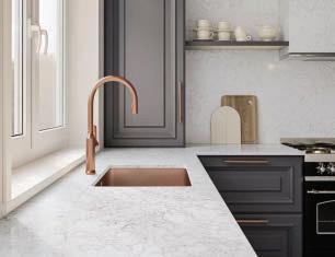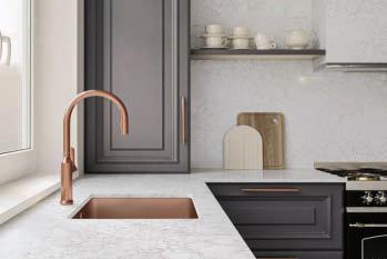 One Quartz Surfaces® now features ViaTech™ Technology, enabling highly realistic full-body vein patterns and colors that more authentically replicate natural stone.