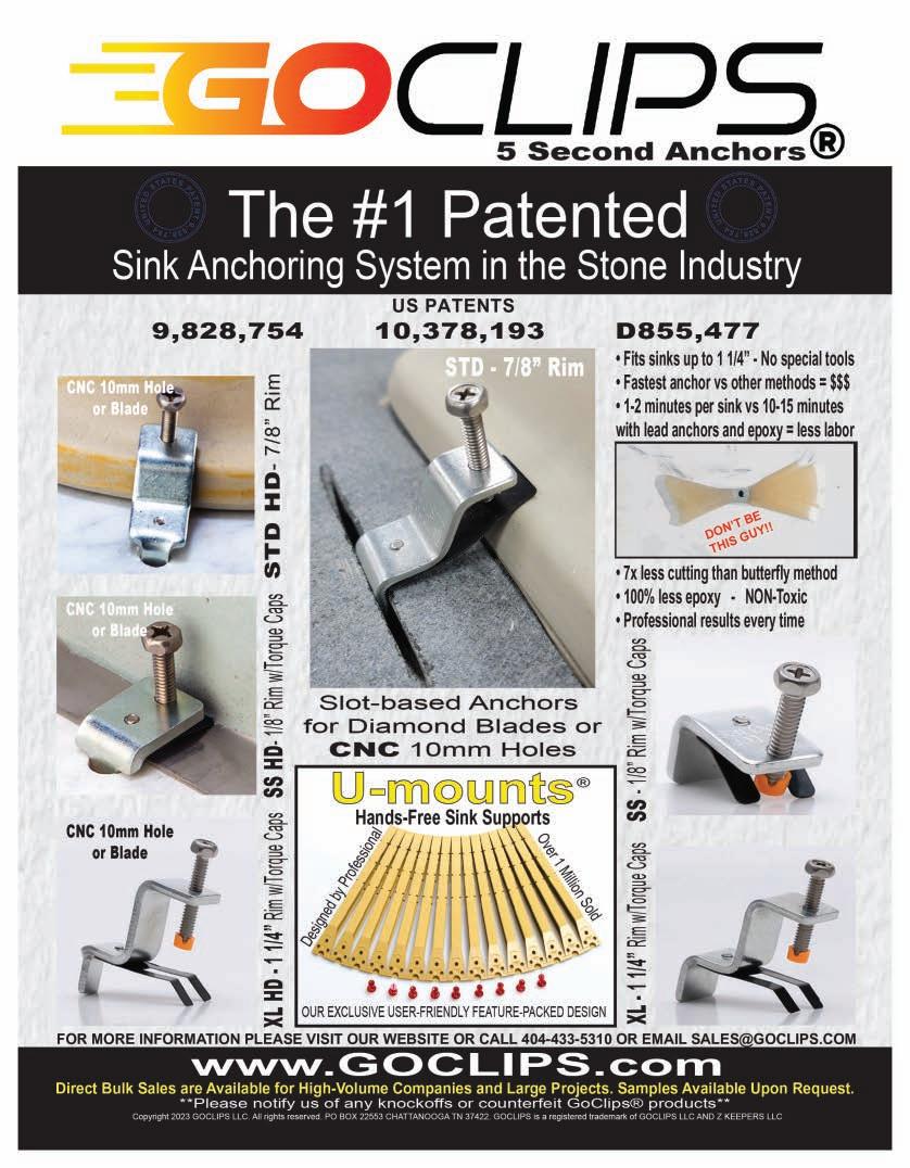 Photos in this publication may not depict proper safety procedures for creative purposes. ISFA and Countertops & Architectural Surfaces magazine support the use of proper safety procedures in all cases and urge readers to take steps to institute such procedures.