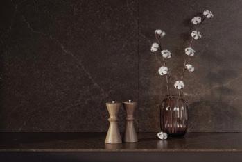 This dramatic yet refined design features warm browns, deep charcoal, and freeflowing brass alloy veining that shifts beautifully under changing light. A bold interpretation of the dark and moody trend, it delivers striking elegance with a lowcontrast, subtle aesthetic.