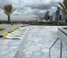 Haddonstone is suitable for indoor and outdoor use in both residential and commercial settings. May be used as walls, backsplashes, countertops, floors, shower floors, exterior walls/floors, and pool linings. It is also important to note that StepWise technology’s ability to provide Haddonstone with 50% greater slip resistance than traditional tile not only makes this tile suitable for exterior use, but also heightens the safety of a space when used as flooring in wet areas.