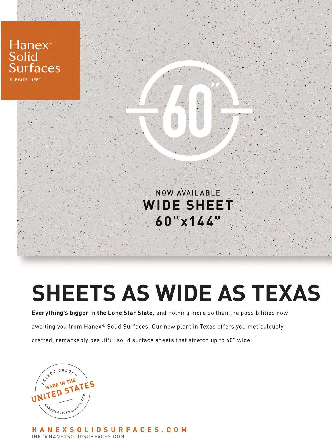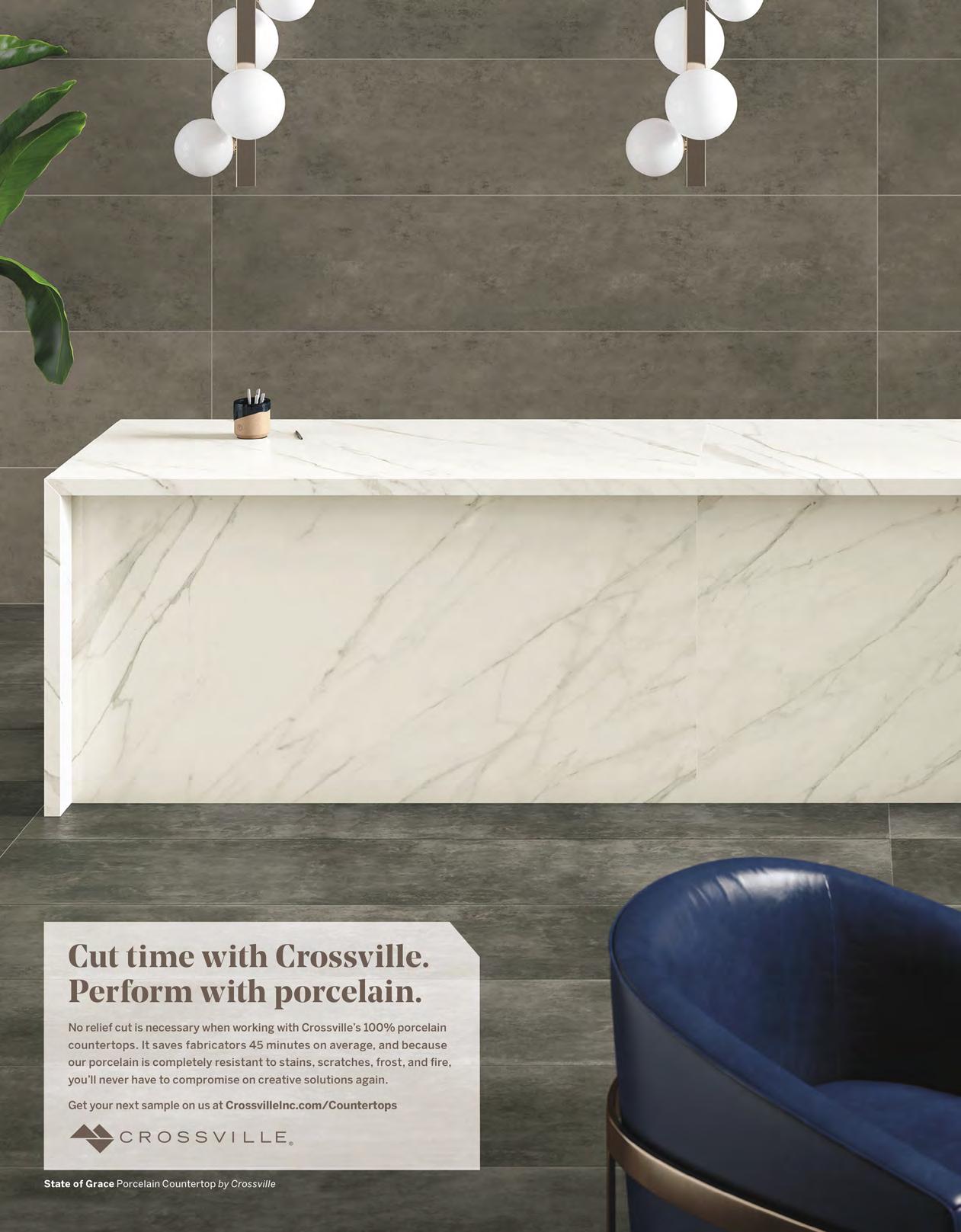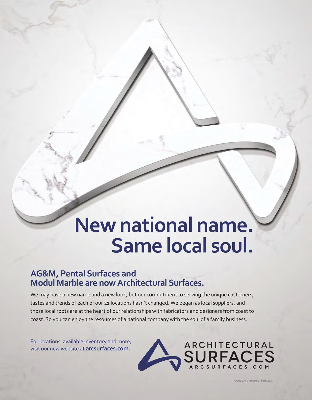Countertops & Architectural Surfaces magazine is proudly printed in the United States of America. Copyright © International Surface Fabricators Association 2021. All rights reserved. No part of this publication may be reprinted or otherwise reproduced without the publisher’s written consent.