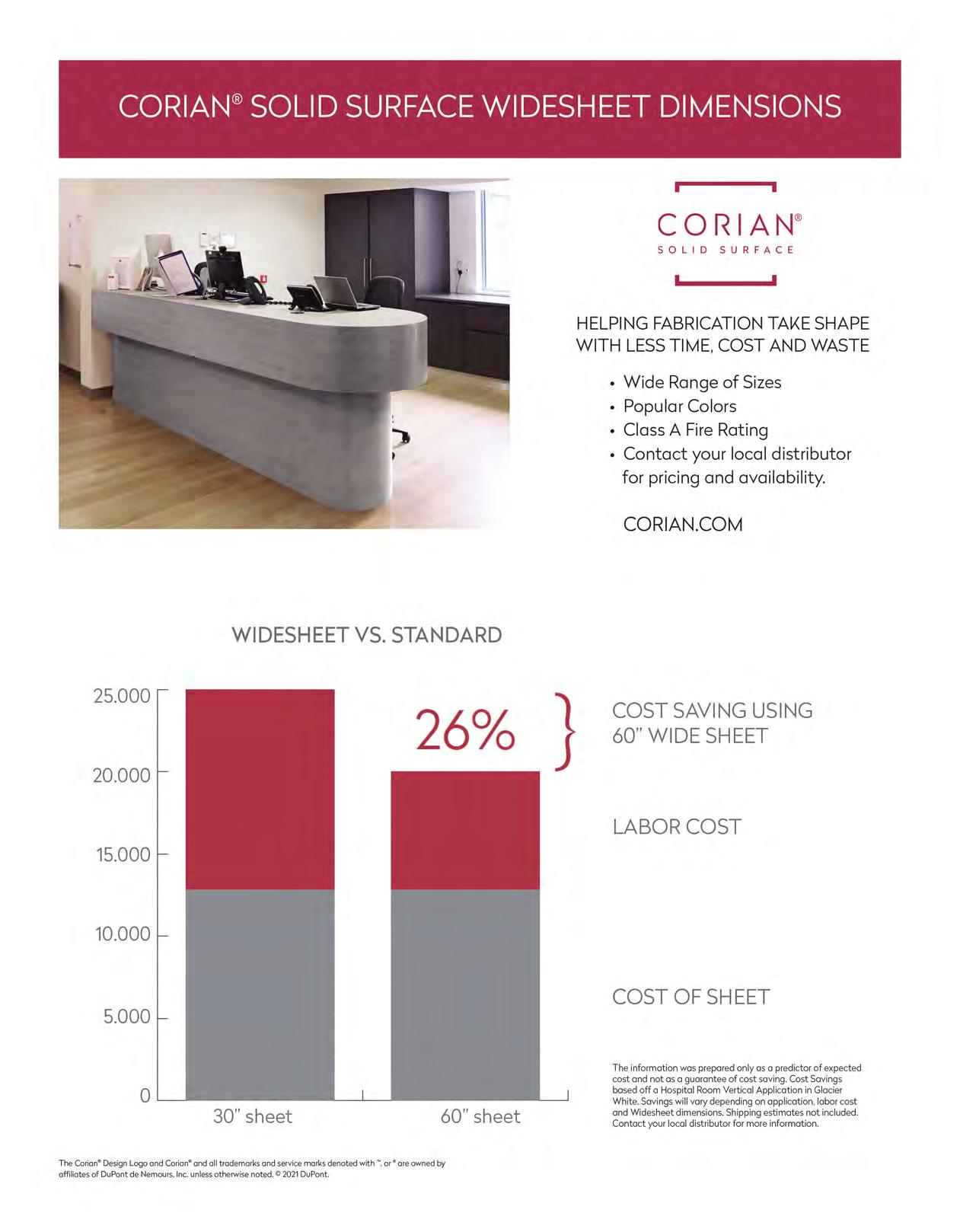 The company strives to make surface aspirations a reality with innovative designs and an enduring color palette. With availability in multiple thicknesses and sheet sizes, as well as finishes, it’s easier than ever to provide custom fabricated, seamless, thermoformed designs that achieve horizontal and vertical application requirements.