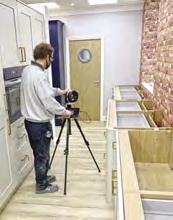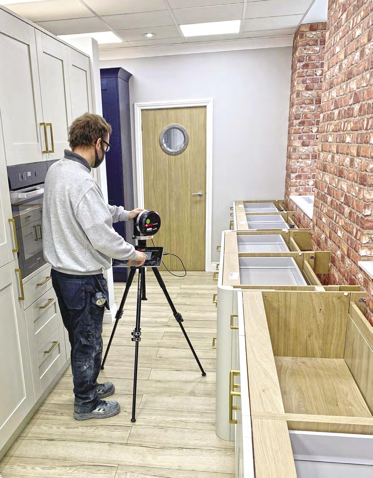 Shaun Swainston of Multi-Surface Fabrications Ltd. uses the LT-2D3D Laser Templator by Laser Products Industries to digitally template and measure for new countertops in this residential kitchen. Photo