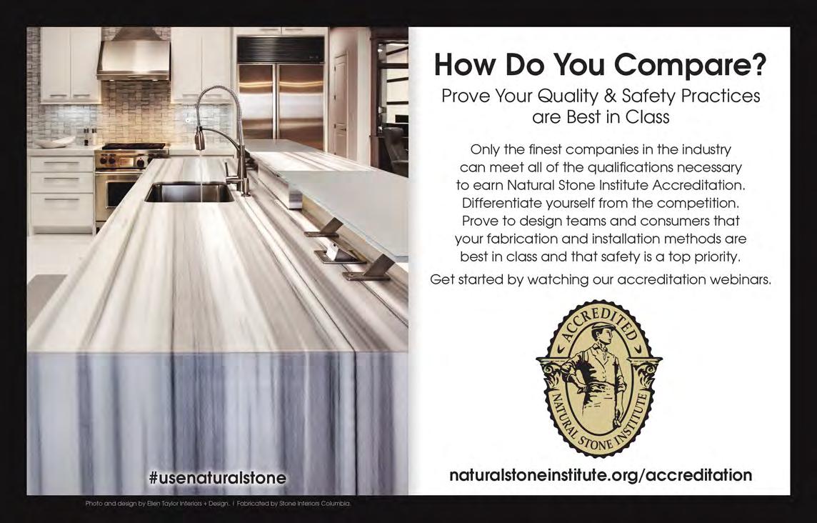 Photos in this publication may not depict proper safety procedures for creative purposes. ISFA and Countertops & Architectural Surfaces magazine support the use of proper safety procedures in all cases and urge readers to take steps to institute such procedures.