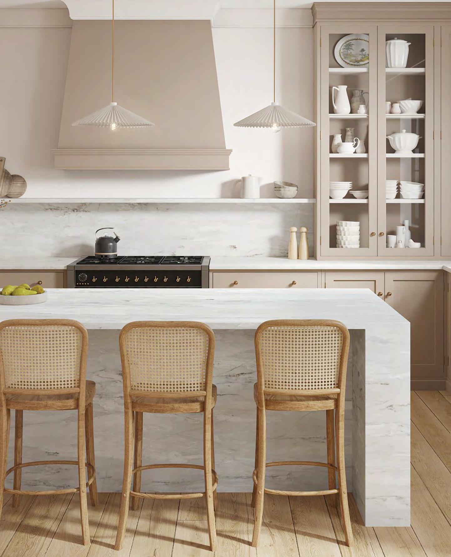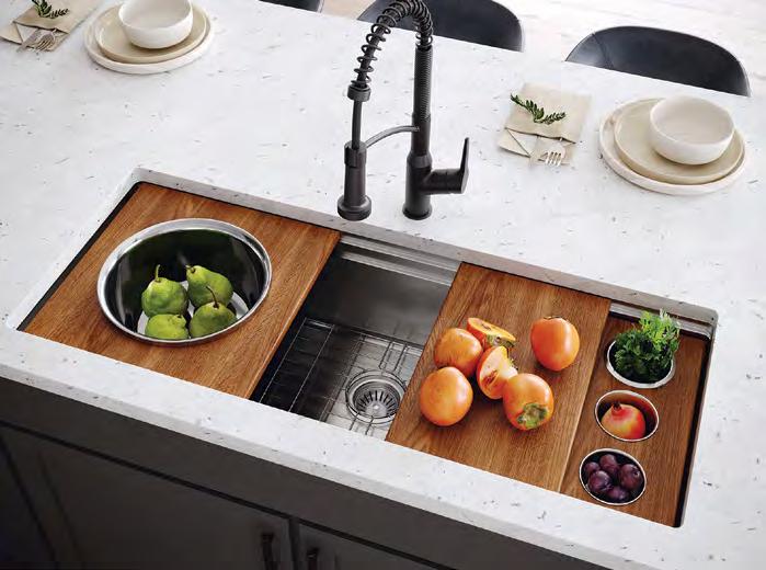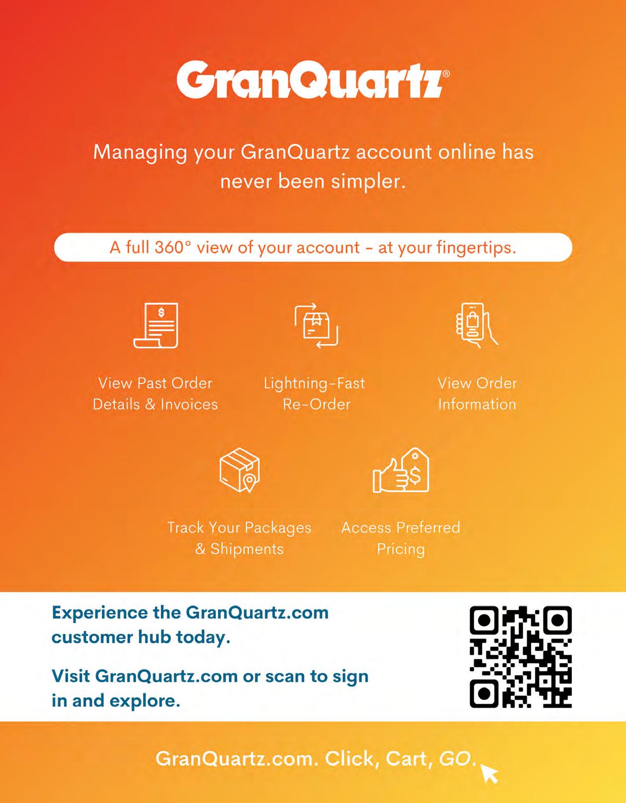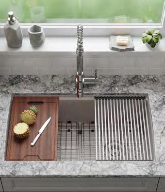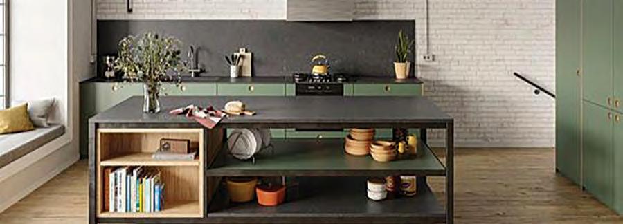 The ENVI Quartz and Porcelain slab collections represent a turnkey brand solution for savvy trade professionals. Backed by their concierge support team and comprehensive merchandising program, each brings together the world’s most on-trend looks, crafted by their handselected group of dedicated producers. Expansive and always evolving, these marketdefining collections now encompass 40 quartz and 40 porcelain selections. Recent quartz additions include eight brand-new, on-trend colorways: Cristall, Tiffany Gold, Venetian Lace, Matera, Galena, Palazzo, Waterfall and Alpine Blu. Guided by decades of industry experience, the ENVI team ensures every slab meets our exacting specifications, performance requirements and high-value expectations. You can rely on ENVI Surfaces to help your customers create the environments they envision — spaces everyone will admire. Pictured here is a sleek, contemporary kitchen showcasing the classic aesthetic of ENVI Cristall. For more information on both ENVI quartz and porcelain collections, visit www.envisurfaces.com.