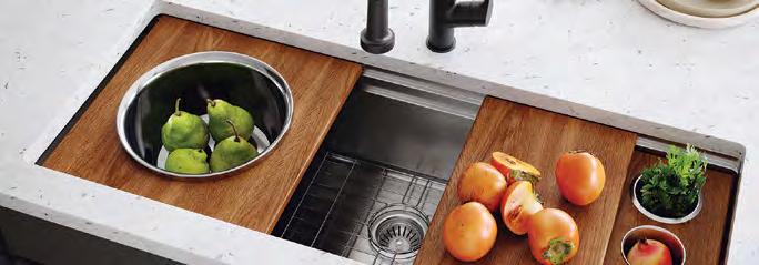 Discover the Workstation Quartz Kitchen Sink, constructed from 80% natural quartz. This blend ensures a sink surface that is both durable and hygienic. Emulating the smooth feel of stone, the quartz material boasts soundabsorption properties and offers robust protection against heat, scratches and stains. Available in four distinct colors, its versatile design is suitable for both drop-in and undermount installations. The sink features a deep 9-1/2inch bowl with sleek corner radiuses for straightforward cleaning. Unique to this sink is the integrated workstation ledge, designed to accommodate and optimize the use of the accessory kit items. This kit includes a stainless steel rollout mat, wood cutting board, stainless bottom grids, and color-matched strainer basket and disposal flange. For more information, visit www.lexiconsinks.com.