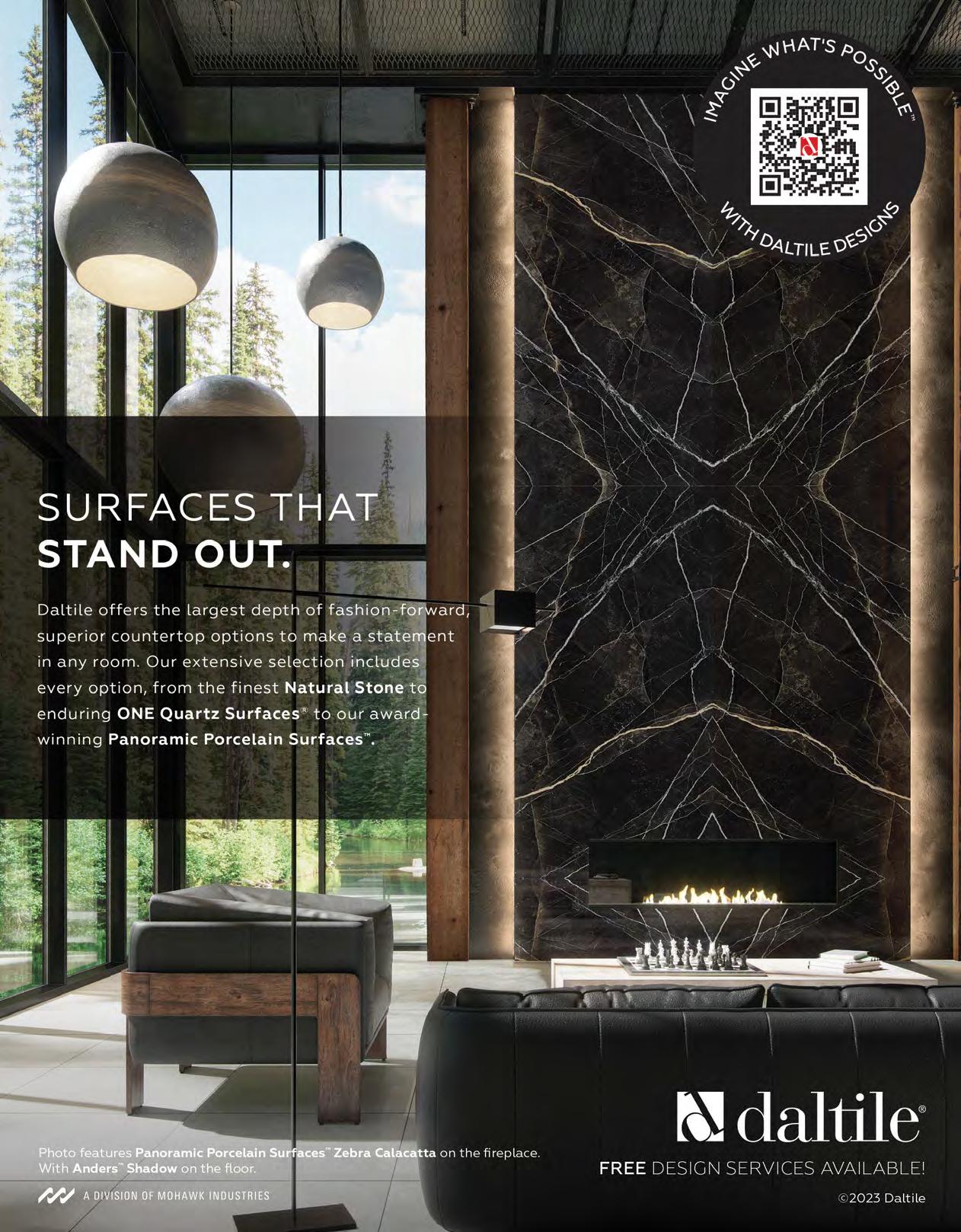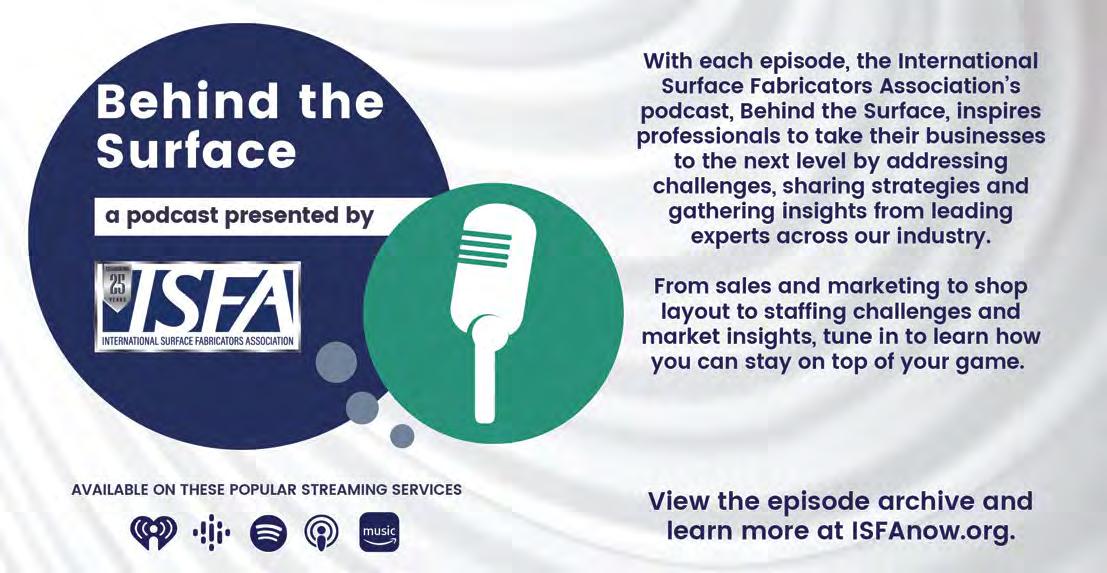Countertops & Architectural Surfaces magazine is proudly printed in the United States of America. Copyright © International Surface Fabricators Association 2023. All rights reserved. No part of this publication may be reprinted or otherwise reproduced without the publisher’s written consent.