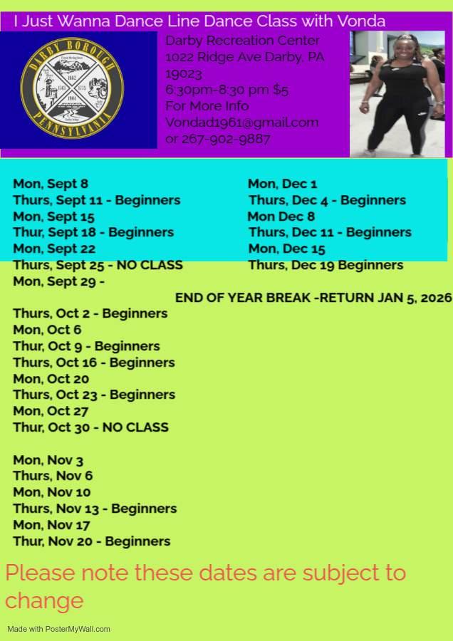 Slide N Sweat Line Dance Class @ Darby Rec. Center (PA) (6PM8PM)