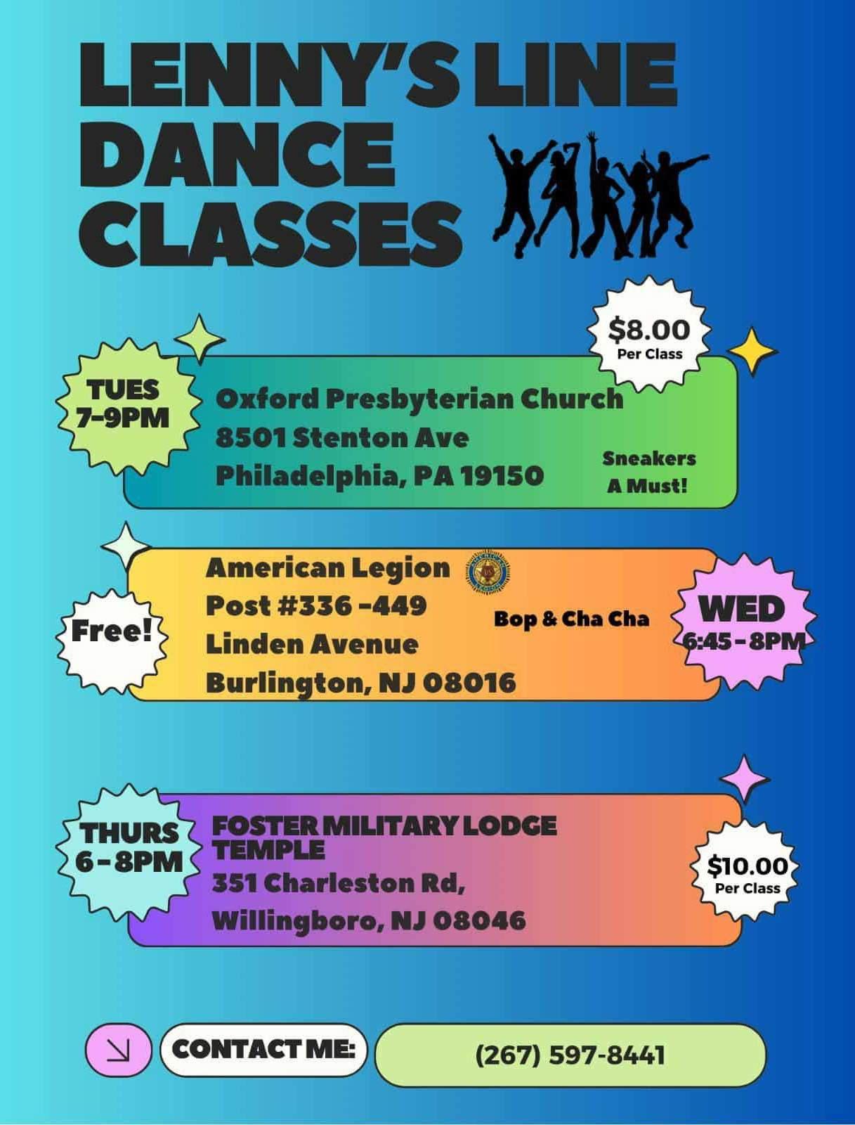 Have a change or correction to a listing? Send an email to dancesing4fitnes@gmail.com. Together, let's make the Philly/South Jersey/Delaware urban line dance scene one of the best on the East Coast.