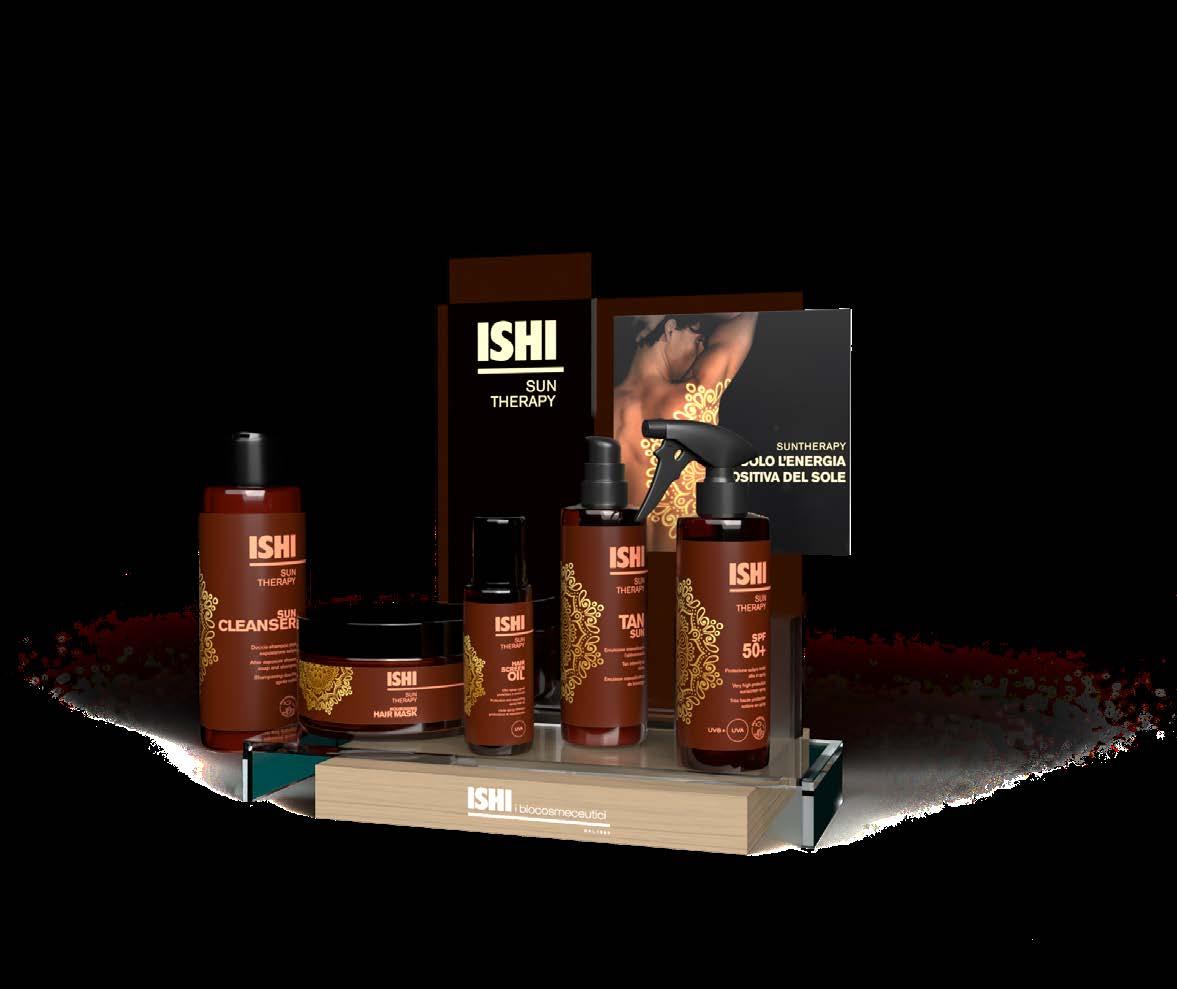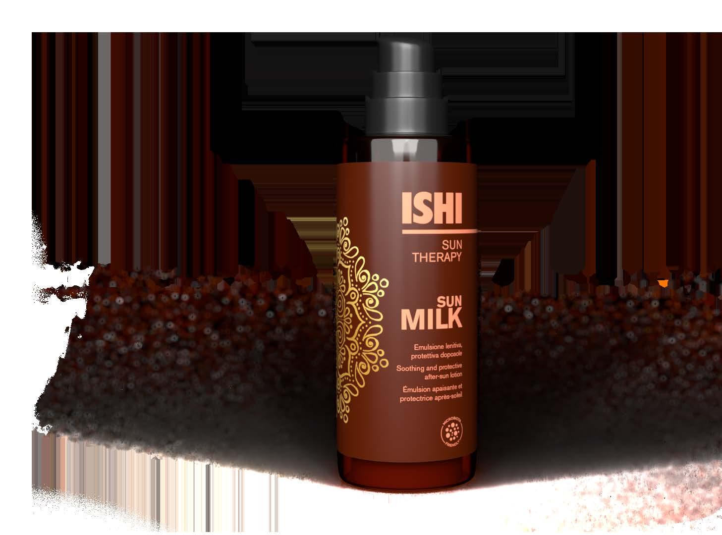 ISHI, thanks to the synergy of active molecules together with a pool of organic filters, selected for their photostability and eco-compatibility , offers a complete and effective line for skin and hair protection, during the different tanning phases : skin preparation, active protection during the exposure, and post-exposure skin care.