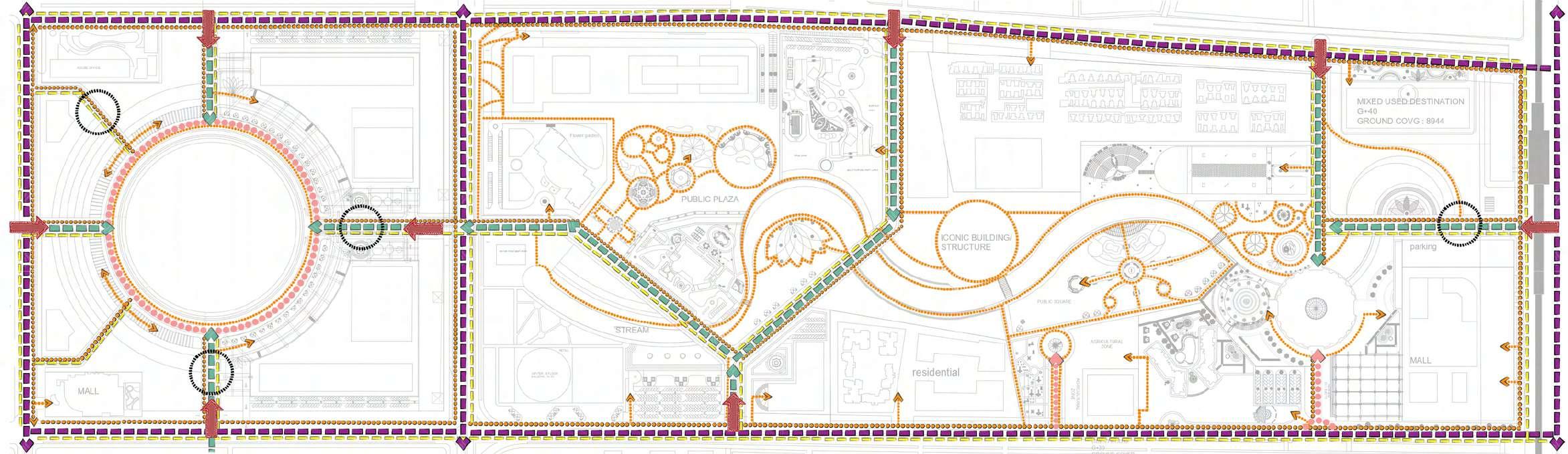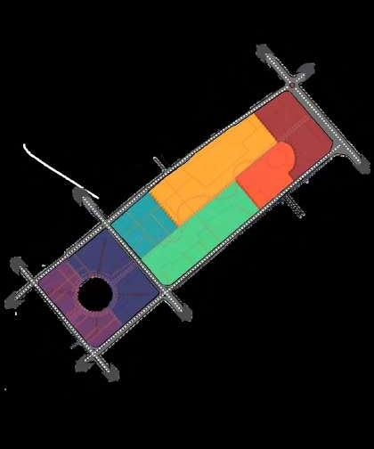 Thezoneshavebeendividedaccordingtothe7mainenergyjunctionsof thebodyfollowingitsmainrepresentationstartingfromtheredtoviolet movingparallelwiththemainvehicularroutethroughthesite