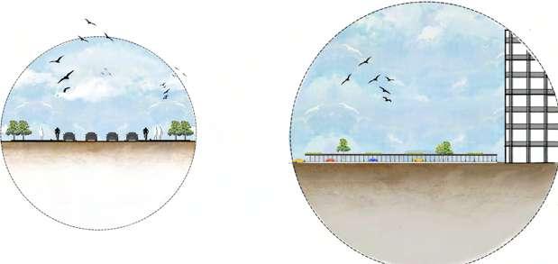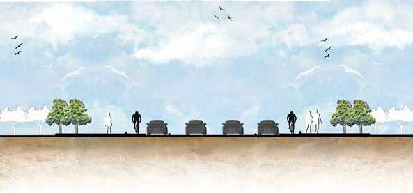 Noisebufferzones provideatthe edgesby providing evergreentrees alsobecominga modeofprivacy fortheviewer's perspective