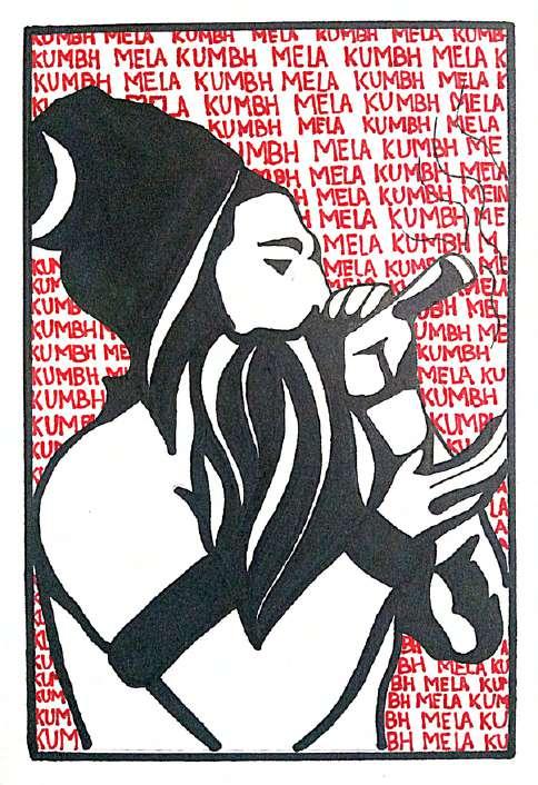 Hand-made logo designing for Kumbh-mela having a main mascot logo and with a background enhancing the work