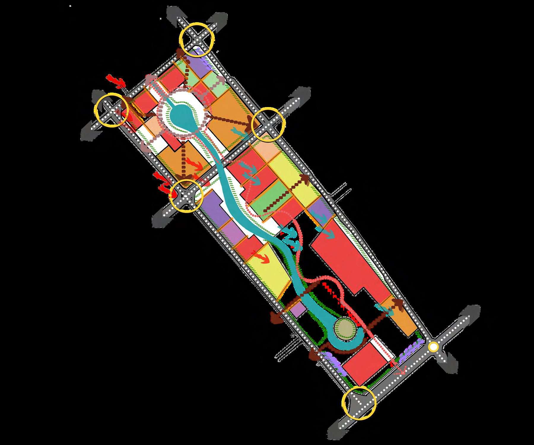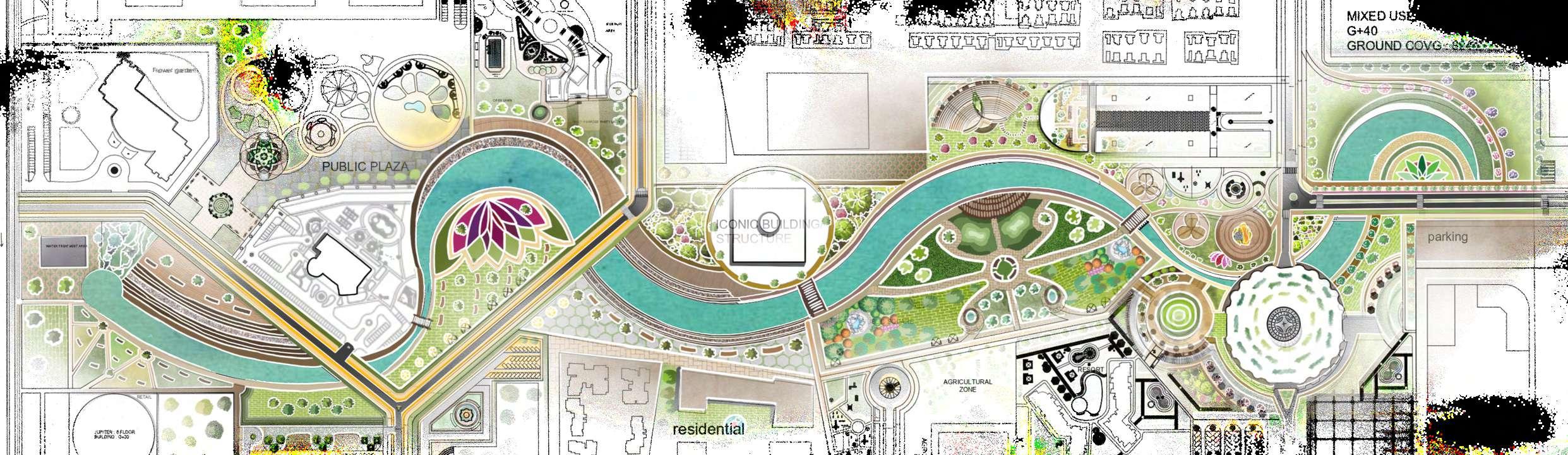 Amusementparkactsasthecrownchakra whilethestreamgoingthroughthesite showcasestheflowofenergyandtheculturalcenteractsasthefocalpoint