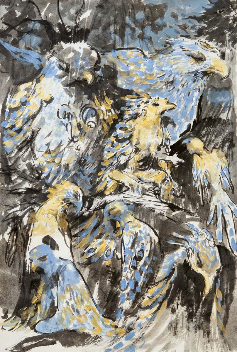 Gathering, 2021, Watercolor and Ink on Paper, 16 x 11 inch