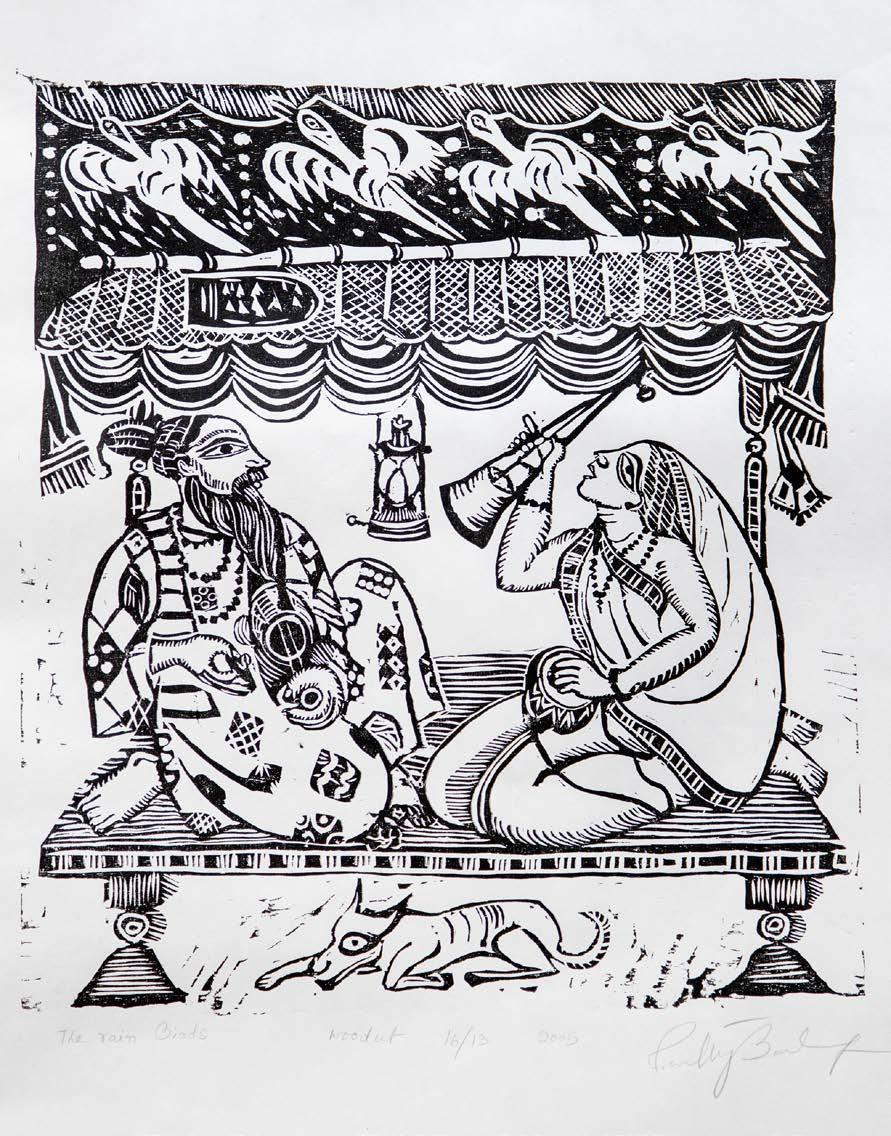The Rain Birds, 2005 11 x 10 inch Woodcut,