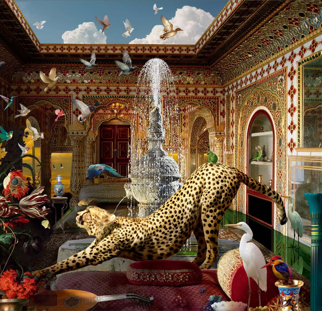 Dawn in the post-human palace Digital Collage archival inks and oil on Canvas